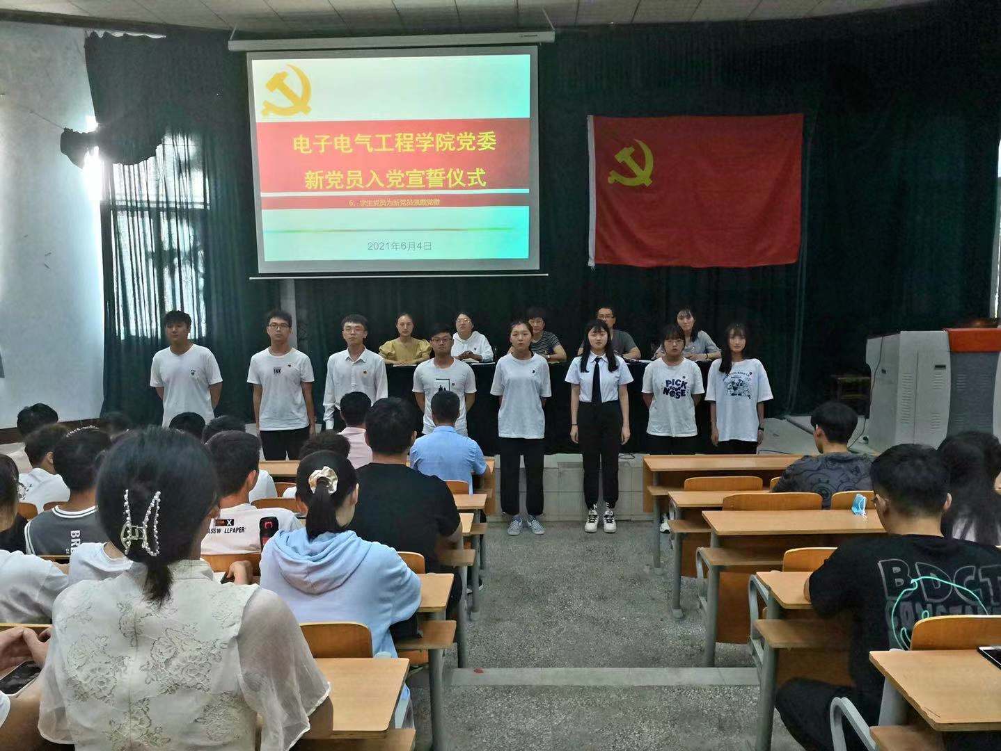 为庆祝中国共产党建党100周年,6月4日,公司党委于睢阳校区举行新党员入党宣誓仪式。公司党委书记李琳、员工支部书记、全体员工党员参加仪式。
