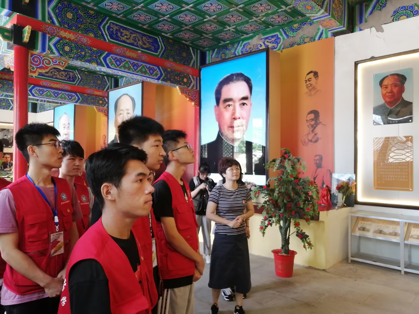 公司党委书记李琳带领师生来到人民领袖商丘丁庄纪念馆,瞻仰毛泽东、周恩来、朱德等革命领袖的巨幅画像,并向革命领袖敬献鲜花,缅怀革命先烈。馆长介绍了建立纪念馆的历史原因和初衷,讲述了那段革命烽火中的红色故事,希望同学们能够铭记历史,珍惜学习时光,练就过硬本领,传承红色基因,勇担时代使命,把个人的理想追求融入党和国家的事业之中,为党和人民做贡献。在学习过程中,同学们被领袖们的英勇事迹和大无畏的革命精神所震撼,纷纷表示要牢记习近平总书记的青年寄语,努力使自己成为祖国建设的有用之才、栋梁之材,不负党和人民的重托。最后,家电义务维修社的同学在纪念馆附近开展家电义务维修活动,为附近村庄的乡亲们免费维修家电。五个小时左右的时间里,共维修七十余件物品,受到了乡亲们的一致好评。