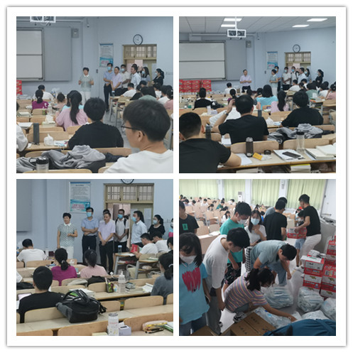 8月8日,公司领导班子成员李琳、赵纲领、蒋玉涛、曾庆国、学工办主任孙莉娟和全体辅导员老师赴考研教室看望慰问正在留校备战考研的员工,并给他们送去防疫物资和考研加油包。