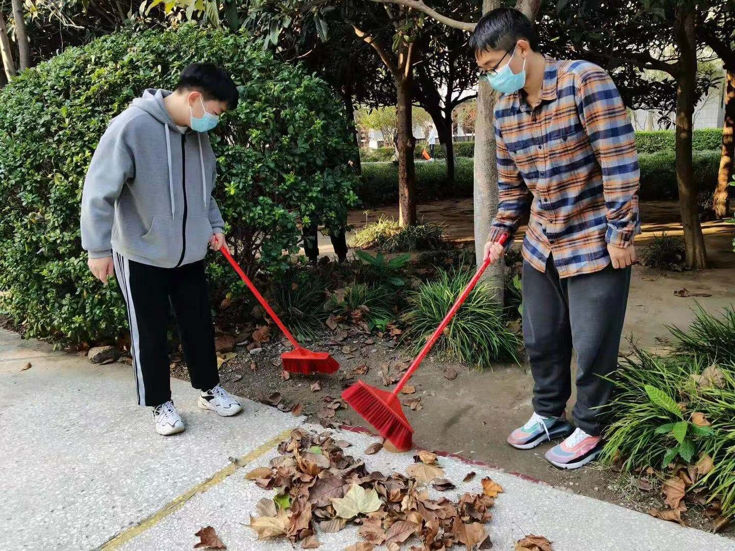 活动开始,生活委员结合卫生区域的大小和卫生状况等合理的分配打扫人员,并发放了扫帚、镊子、搓斗等工具。在活动中,同学们不怕脏、不怕累,互相帮助,将各个角落的落叶、枯枝、垃圾等全部清理干净并放入垃圾桶内。打扫结束之后,同学们自觉将打扫工具放回指定位置。最后,员工协助生活部进行检查。