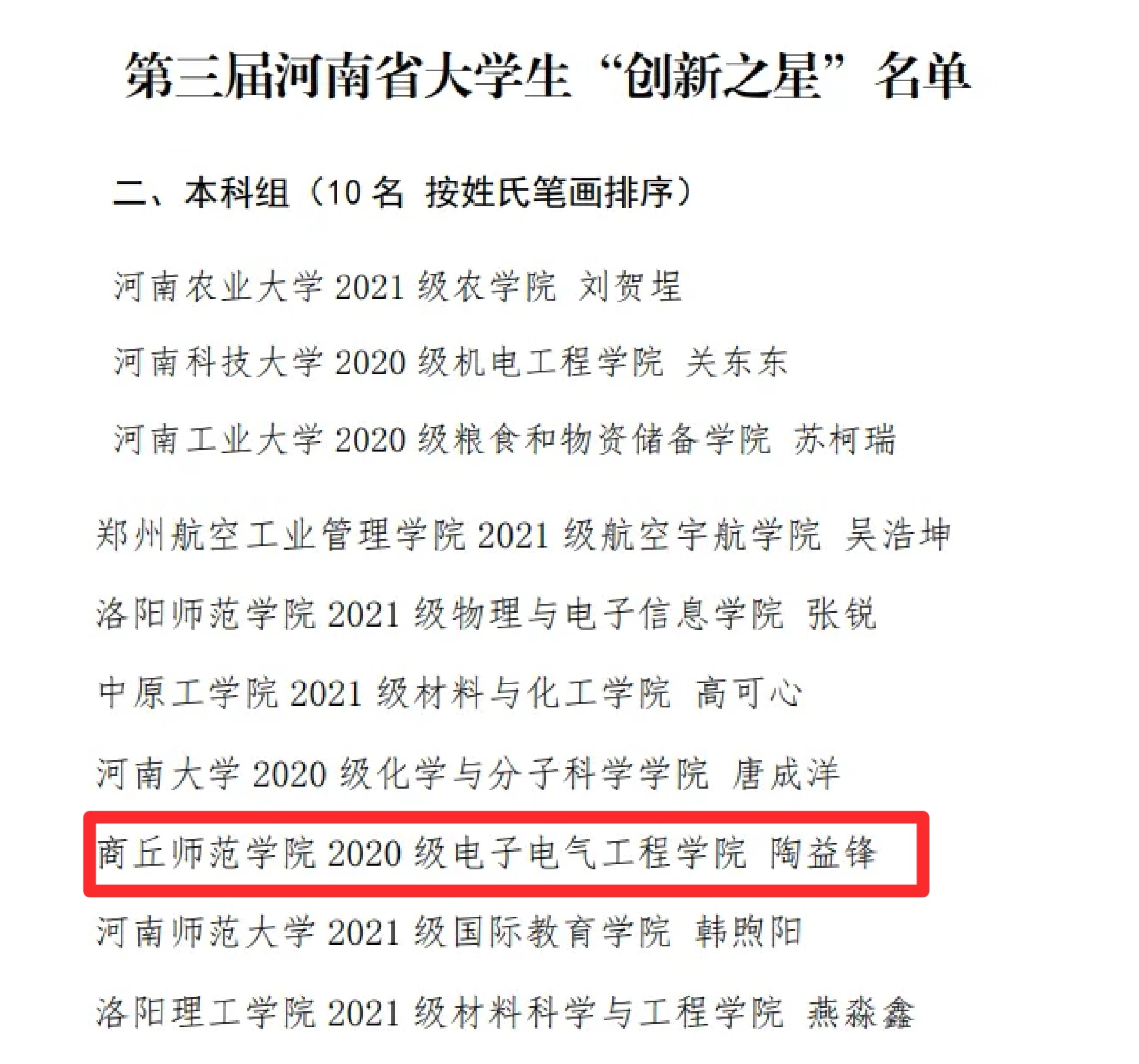 近日,河南省教育厅发布了《关于公布第三届河南省老员工“创新之星”名单的通知》,评选出第三届河南省老员工“创新之星”30名,其中本科组10名,公司学子陶益锋成功入选。这也是公司学子首次获得该项荣誉称号。