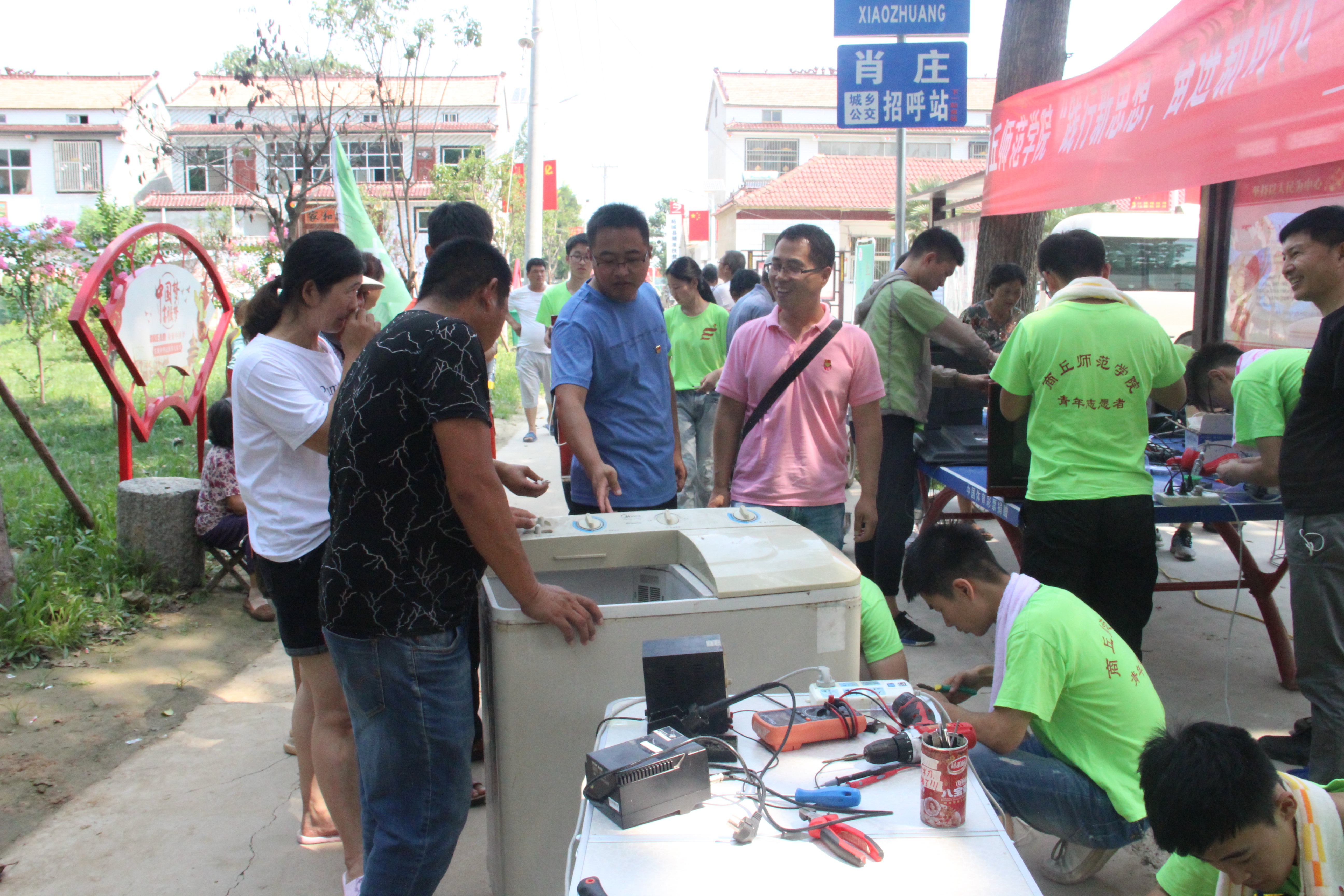 2018年7月14日,公司助力脱贫党员志愿者服务活动在柘城县慈圣镇肖庄村展开。服务团在党总支书记姚晓惠、副书记孔祥伟、团总支书记张凯,以及杨同辉、孙春志老师的带领下,为当地居民开展家电义务维修及用电安全知识宣讲普及活动。