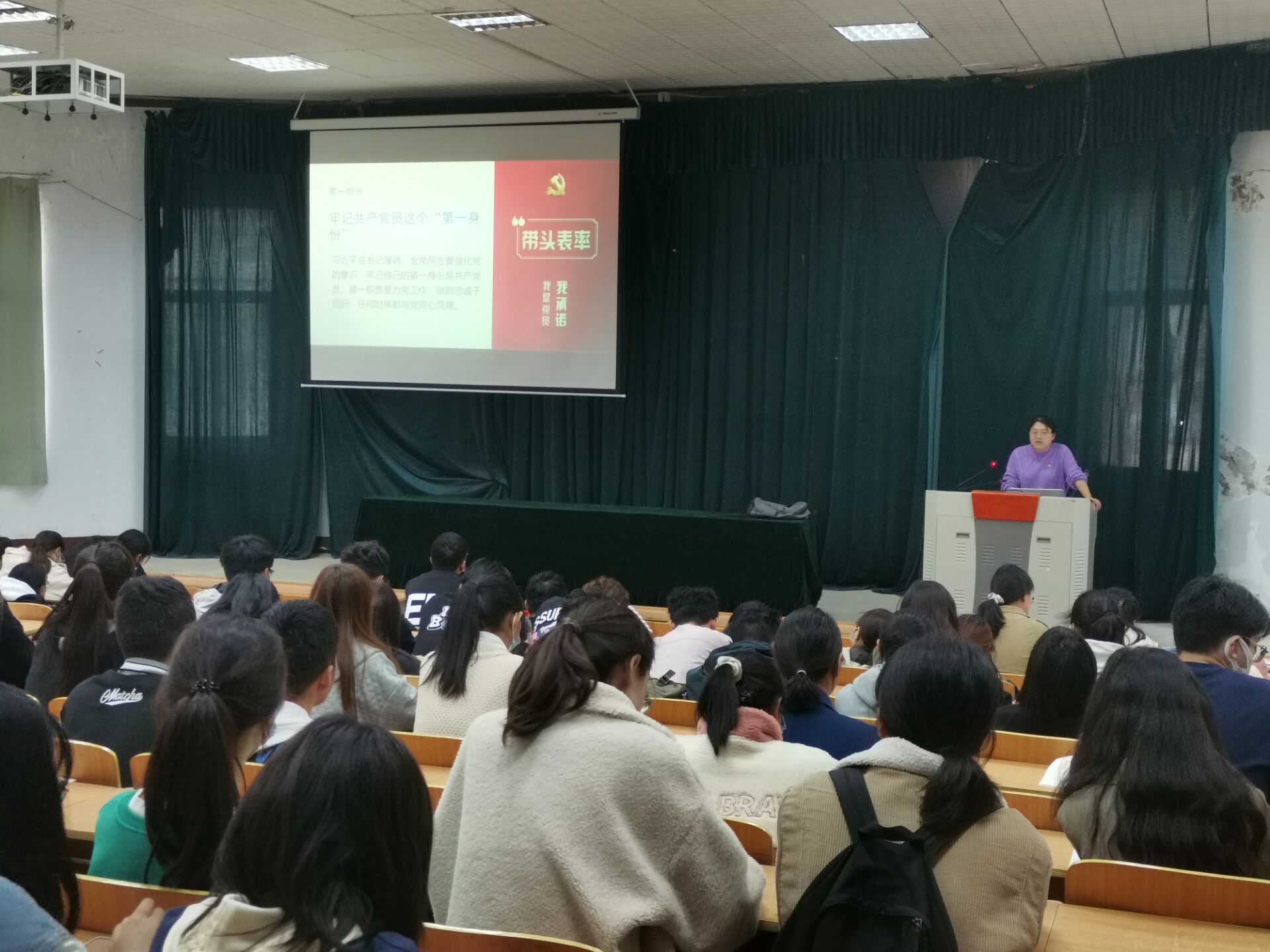 这次党课以“牢记党员身份 时刻严守党章党规党纪”为主题,从牢记共产党员这个“第一身份”,深入学习党章党规党纪,严守法纪底线,牢记入党誓词,坚持合格党员标准,学党章党规、学系列讲话、做合格党员,在尊法学法守法用法上作表率等五个部分进行讲述,号召入党积极分子要牢记党员身份,学习党规党章,学习法律法规,学习理论知识,早日成长为忠于党、忠于国家的合格的共产党人。