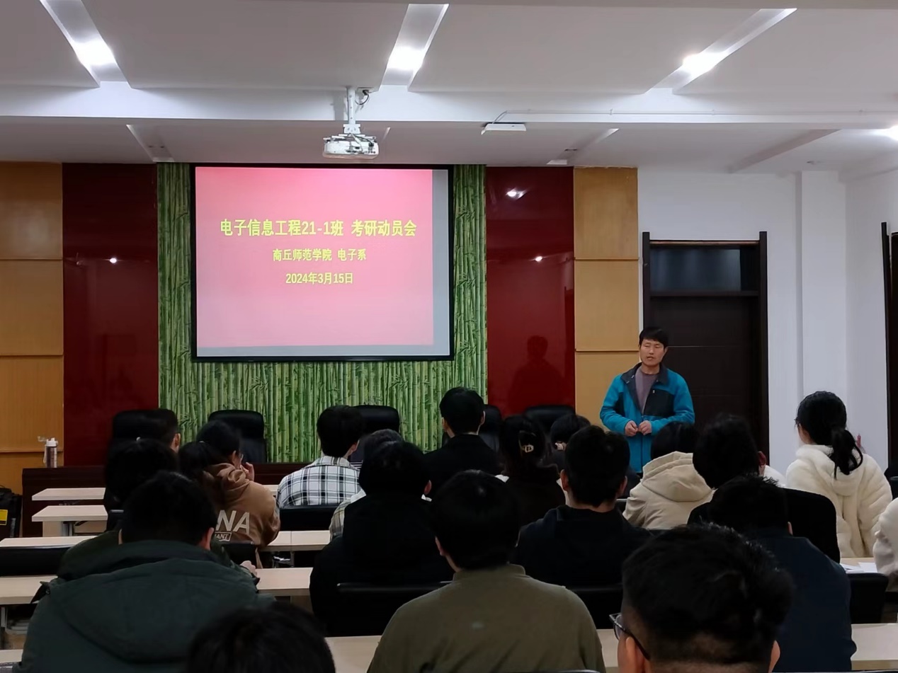 3月15日晚,公司电子工程21-1班在睢阳校区召开了考研动员会。参加此次会议的有电子系主任孙春志、班主任王蒙老师及全体员工。