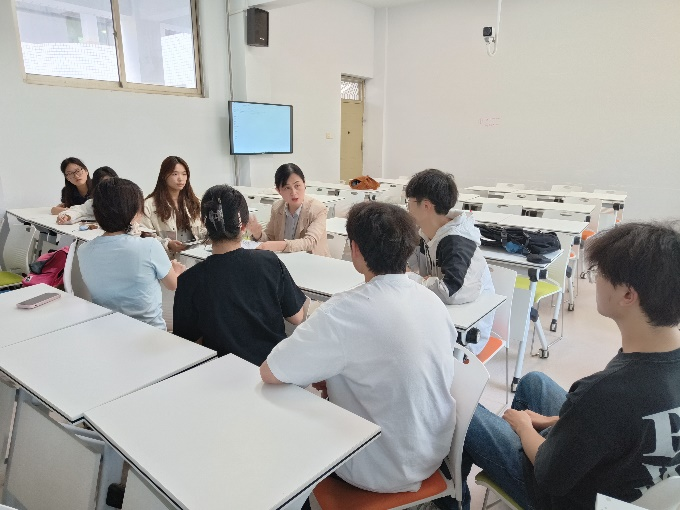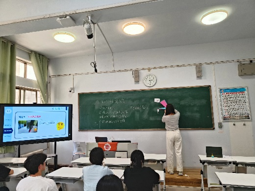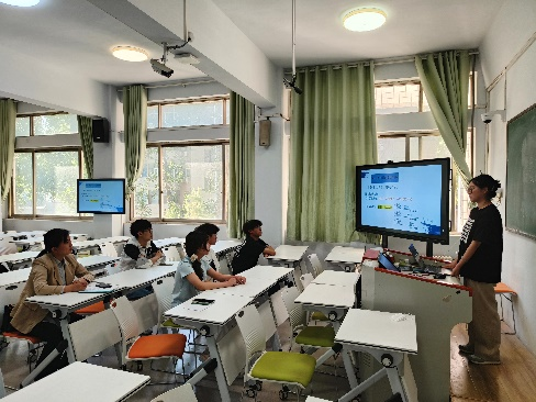 马晓慧老师和坊员们按时到达约定教室后,首先进行的是员工教学设计的汇报展示活动。员工逐一展示自己预先做好的微型课教学设计。坊员们准备充分,他们自制教具,熟练地进行了教学实施,其余同学和马老师一起做了详细的听课记录。