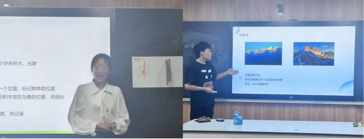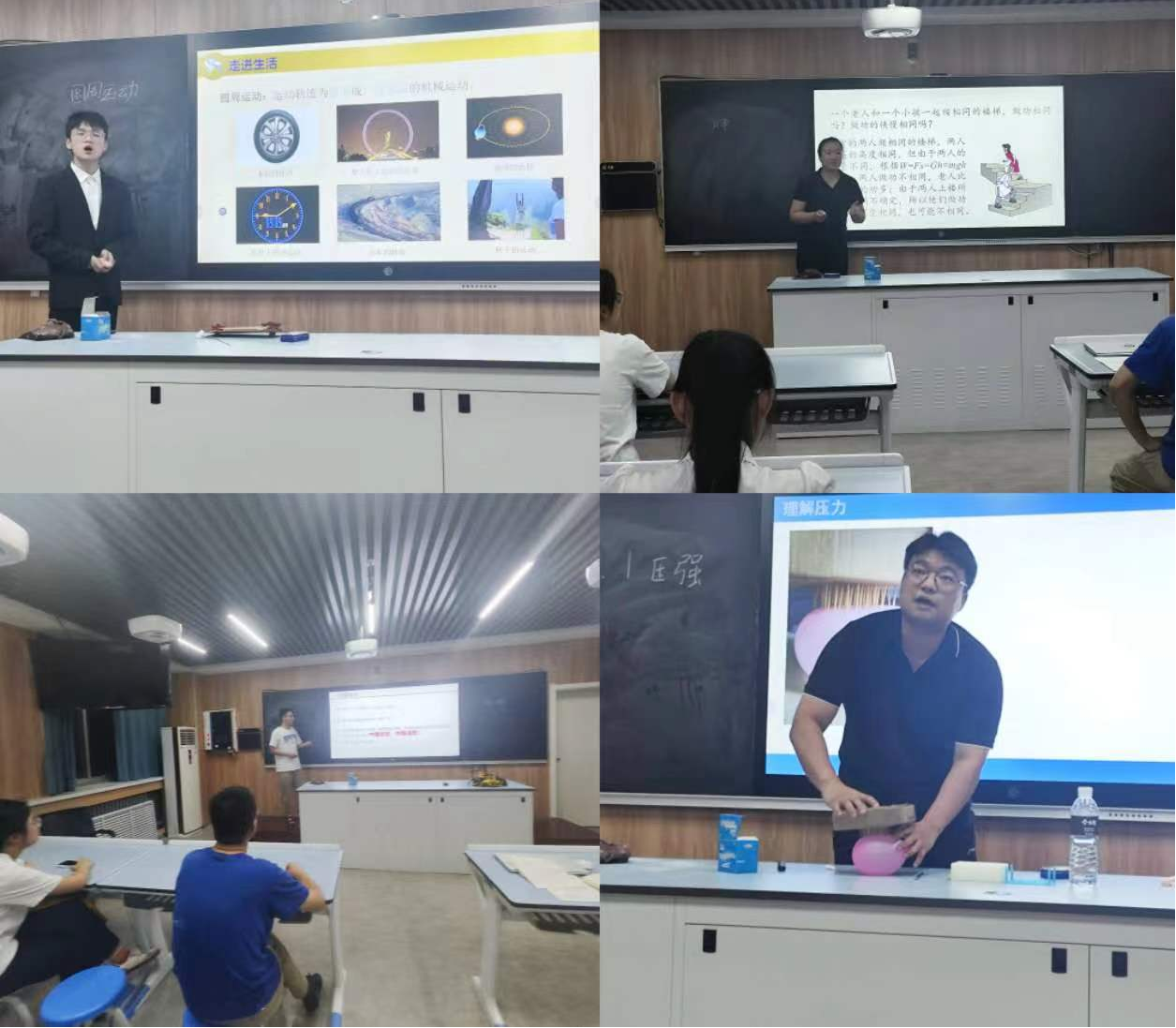 每个工作坊选出的优秀员工依次进行了微型课教学展示,牛杰、李金聪等10位同学分别展示了《圆周运动》、《机械能守恒定律》等课题的微型课教学过程。同学们都制作了精美的课件、并采用了实验、视频播放、动画等手段进行了辅助教学,精心组织和设计教学内容,使得教学内容丰富多彩,教学过程生动有趣。