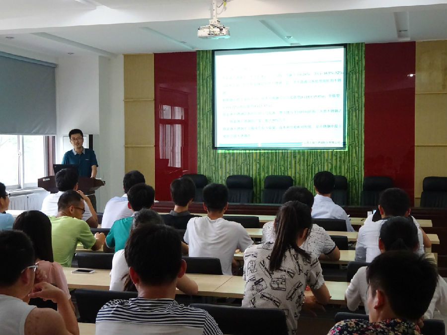 报告会开始,李朋副经理对张志鹏博士的学术背景及研究成果作了简要介绍,并对他的到来表示热烈欢迎。报告会上,张志鹏博士首先介绍了太钢的总体情况,随后从铁素体不锈钢基本概念,太钢超纯铁素体不锈钢最新进展及应用,铁素体不锈钢发展面临的挑战等三个方面进行介绍,阐述了铁素体不锈钢的发展历程及未来前景。张博士的报告内容丰富,讲解深入浅出,在师生中产生强烈反响。在报告会现场交流阶段,张博士就大家在超纯铁素体不锈钢的生产,加工等感兴趣的问题做了细致的解答,并对同学们提出的问题给出了回答。最后,李朋副经理对此次报告会做了总结,并对张博士的精彩报告表示衷心地感谢。