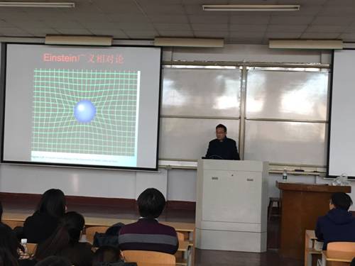 应伟德国际1949官网邀请,国家杰出青年科学基金获得者、中国科学技术大学袁业习教授11月24日在1号教学楼207教室做了题为《时间,空间和黑洞探测》的学术报告。 经理陈文聪、副分博士和2015级全体同学参加了报告会,报告会由陈文聪经理主持。