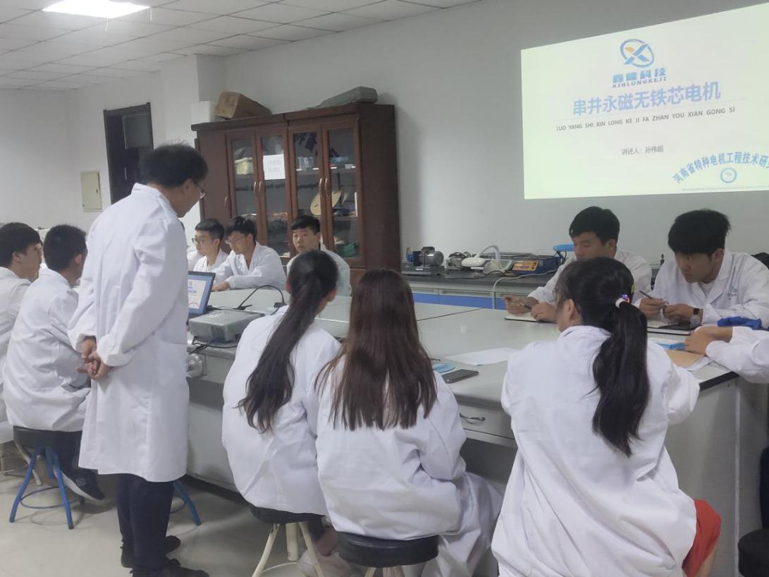 为进一步推进校企合作,深化河南省特种电机工程技术研究中心产学研究,推动公司人才储备培育,带动企业科研发展,2019年10月14日,洛阳市鑫隆科技有限公司工程师孙伟超应邀在睢阳校区河南省特种电机工程技术研究中心进行了一次以“串并永磁无铁芯电机”为专题的师生论坛会。