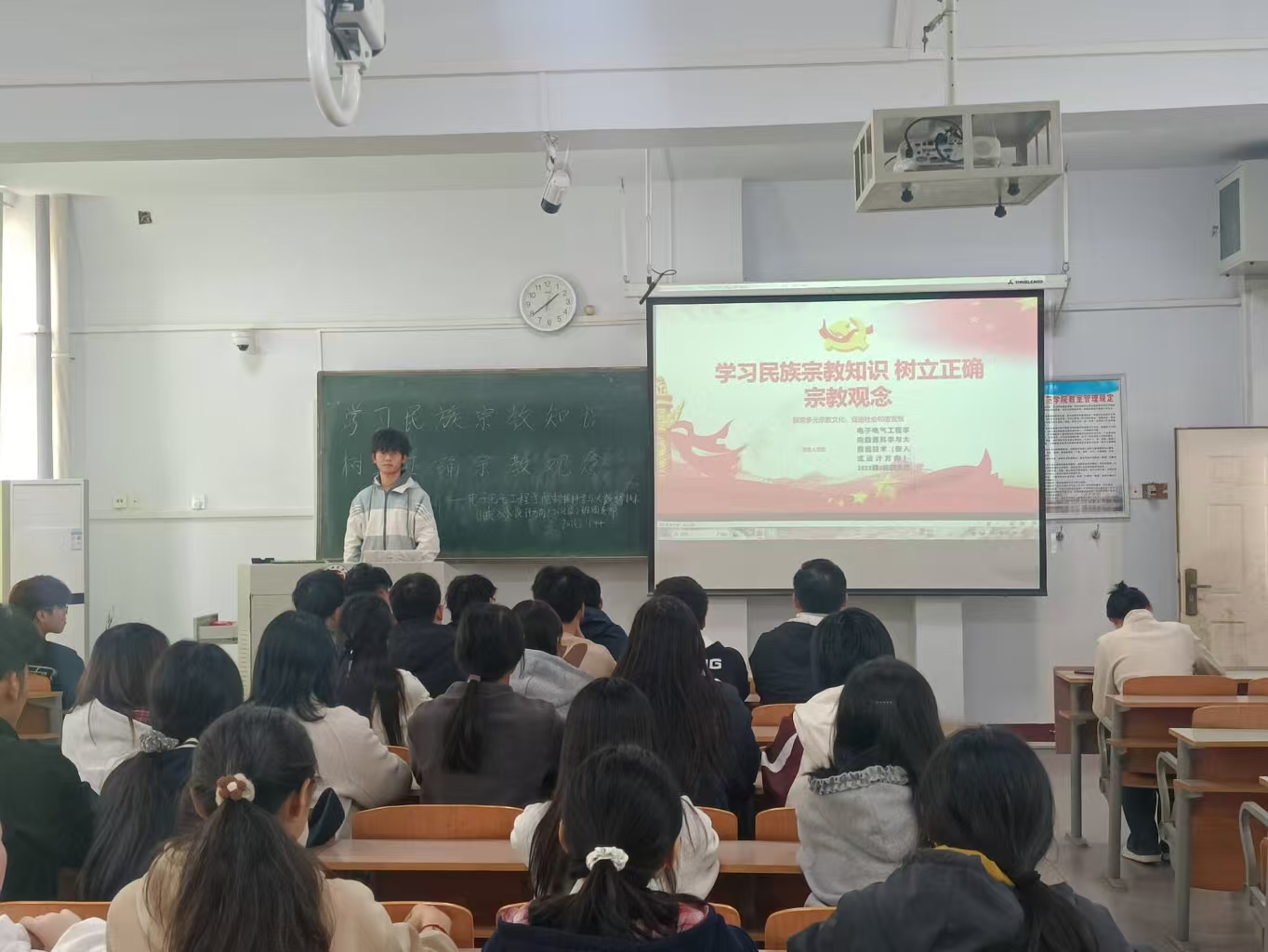 本月的团日活动主要围绕三大主题:在“学习民族宗教知识,树立正确宗教观念”主题团日活动中,各班团支书通过PPT形式向同学们系统讲解了我国宗教政策法规的核心内容,强调宗教活动必须在法律和政策允许的范围内进行,明确校园内严禁任何形式的传教和宗教活动。同学们纷纷表示,要以此次活动为契机,自觉抵制宗教渗透,维护校园和谐稳定,为建设平安校园贡献力量。