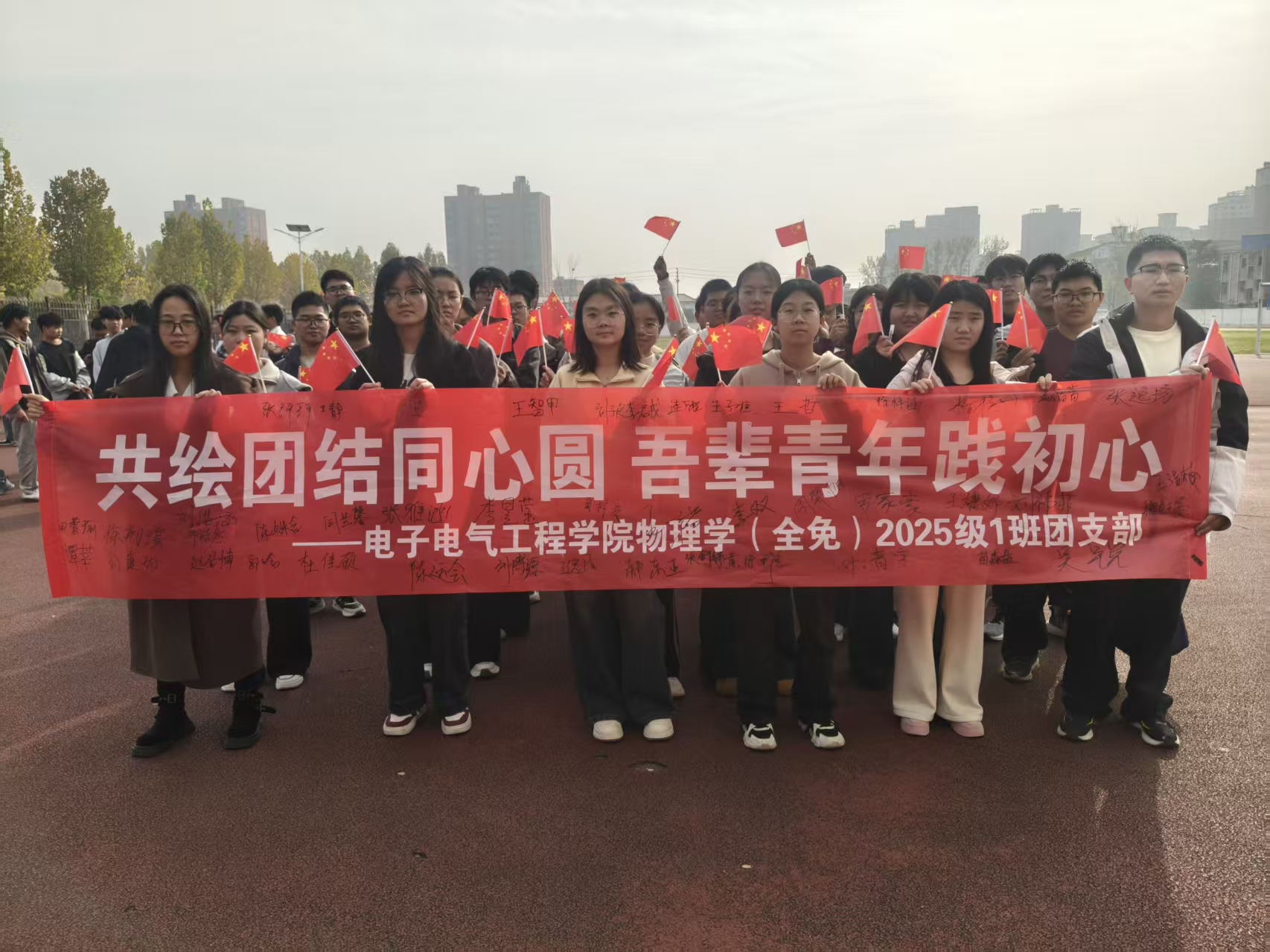11月14日,24级物理学1班团支部及25级物理学(全免)1班团支部,在睢阳校区操场开展了以“共绘团结同心圆,吾辈青年践初心”为主题的团日活动。