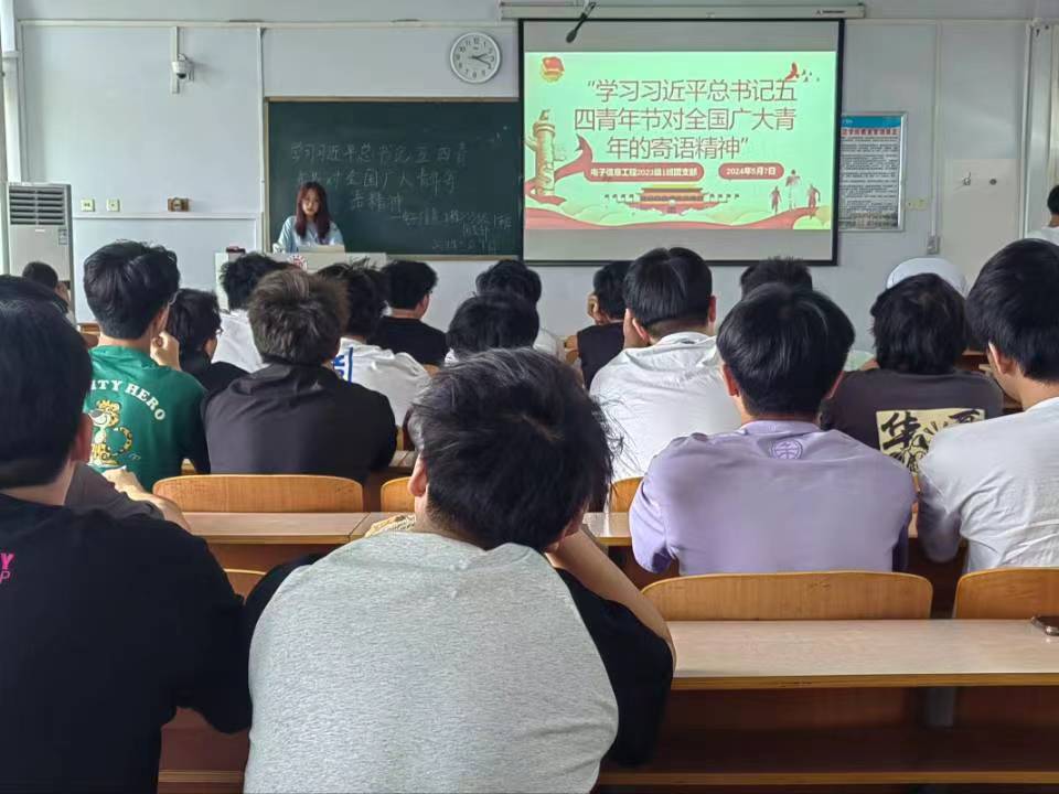 5月7日,伟德国际1949官网各团支部于睢阳校区一号教学楼开展学习习近平总书记五四青年节对全国广大青年寄语精神主题团日活动,2023级全体员工参加。