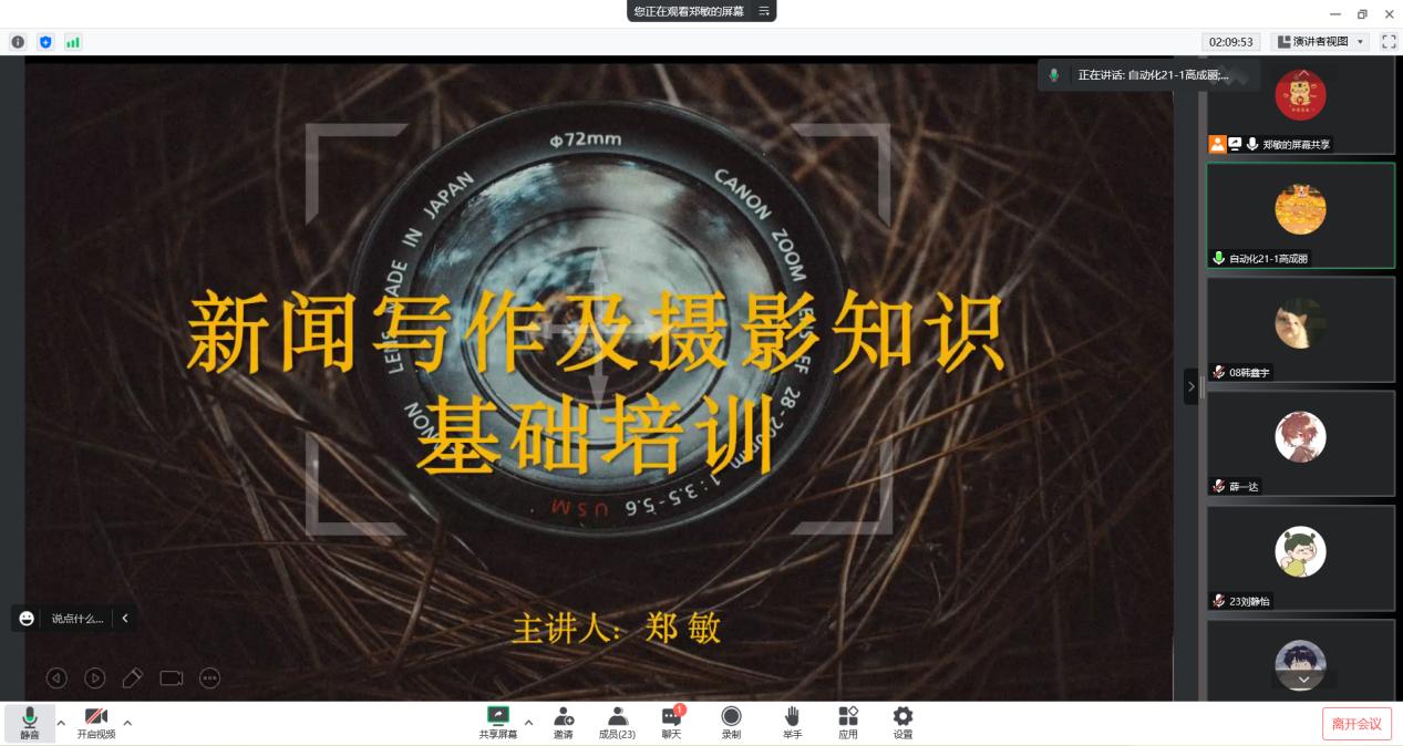 5月17日,公司青梦宣传中心于线上召开新闻写作及摄影知识基础培训会,本次培训会的主讲人为郑敏老师,青梦宣传中心全体成员参会。