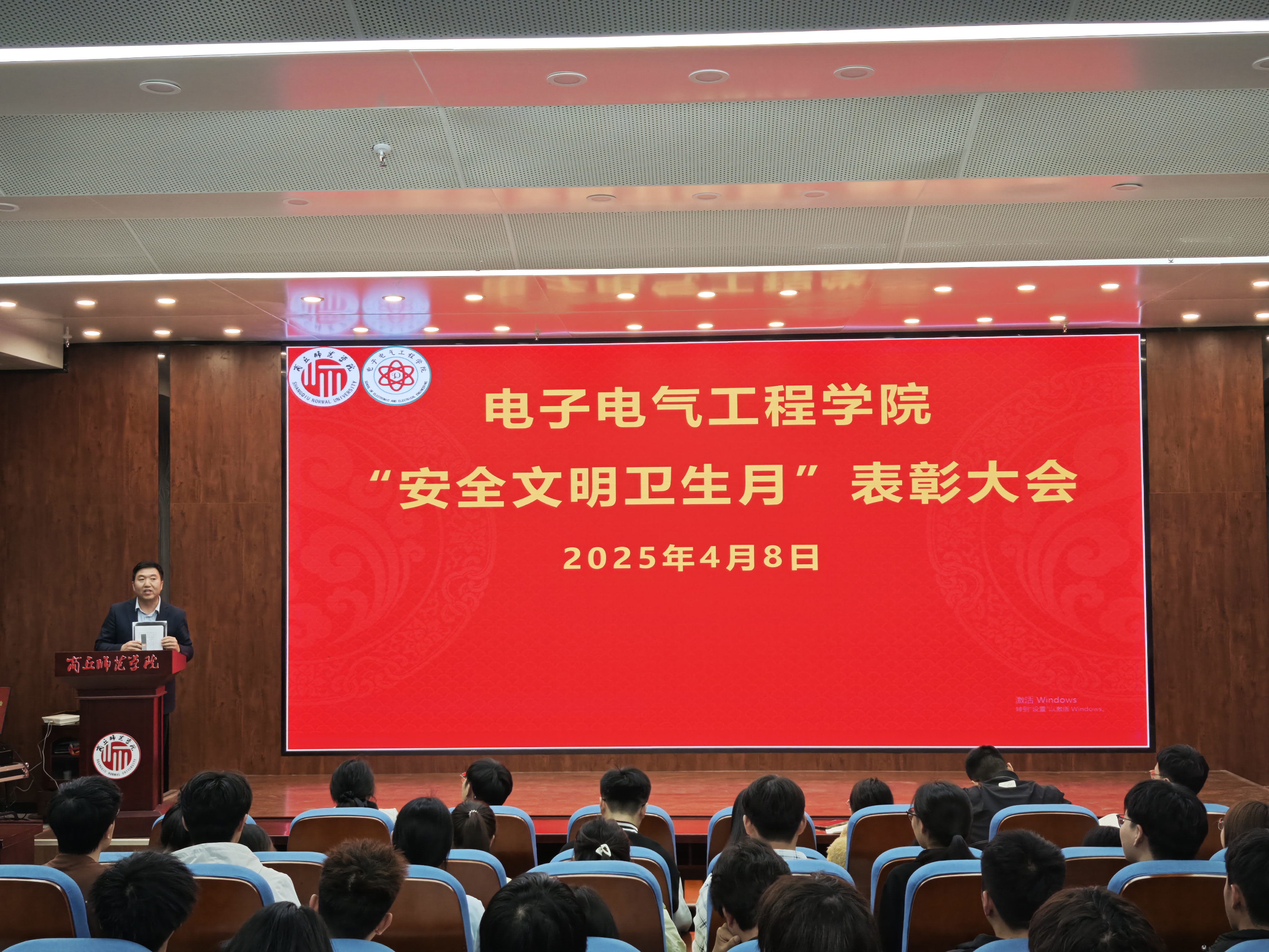 4月8日,公司于工科实训中心报告厅召开“安全文明卫生月”表彰大会。公司党委副书记蒋玉涛、学工办主任孙莉娟和各年级辅导员出席会议。