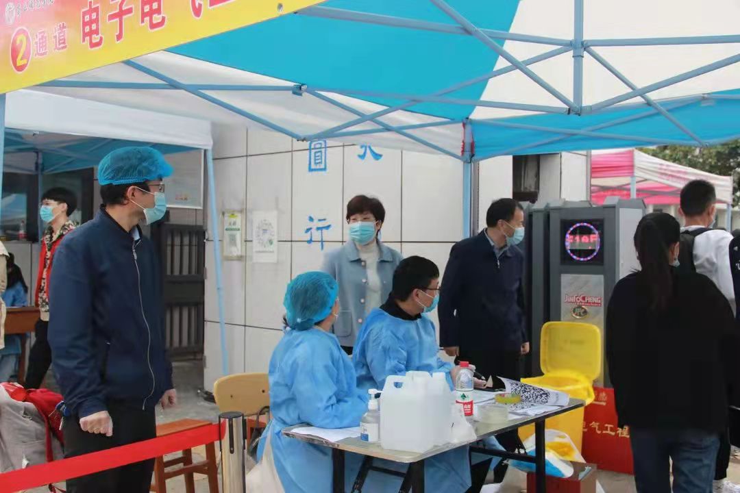 由于现阶段仍处于疫情防控的特殊时期,公司采取“1对1”的志愿迎新服务的方式,由员工志愿者带领新生安全有序地完成检查证明、消毒、测温、信息审核、报道、核酸检测等工作,将新生的迎新工作落实到个人。公司党委书记李琳、经理赵纲领、副书记蒋玉涛、副经理曾庆国等院领导纷纷来到迎新点检查指导迎新工作,并亲切慰问前来报到的新同学,他们与新同学热情地交谈,表达了对其未来的期许和希冀,而后对志愿者们尽心尽力的服务工作与充满热情的工作态度给予了肯定和鼓励。
