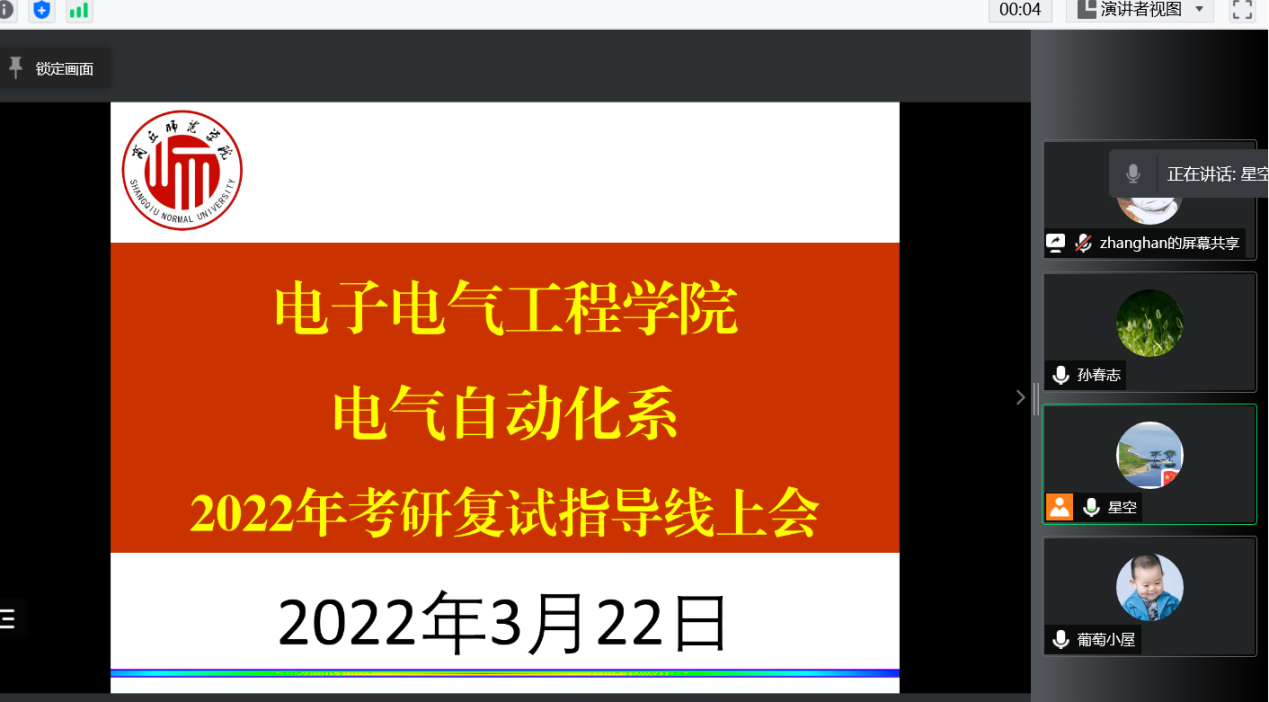 为了帮助考研员工更好的面对考研复试,掌握相关技巧,322日,电气自动化系举行考研复试指导线上会。公司部分老师以及电气工程及其自动化专业和自动化专业准备参加考研复试员工参加了会议