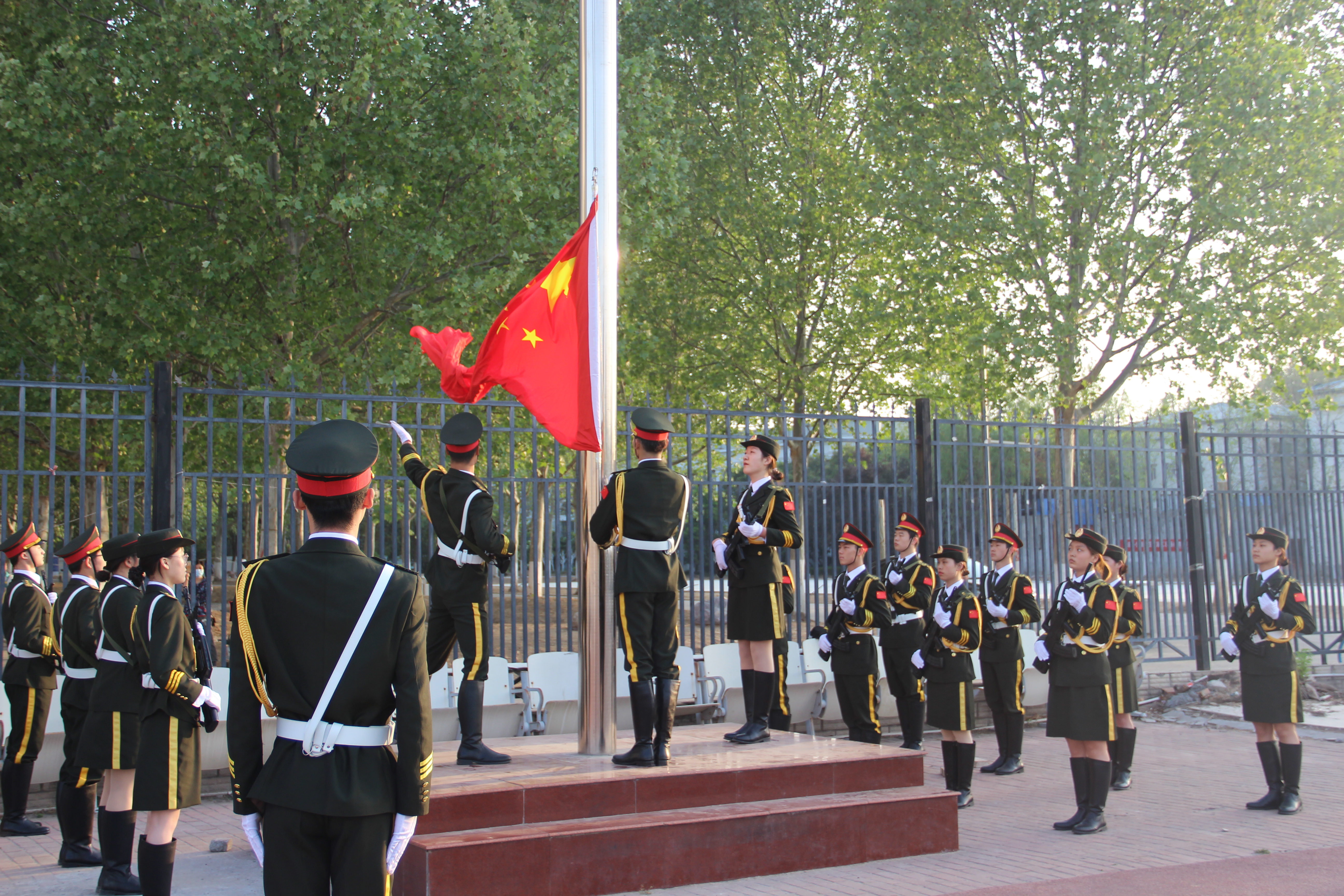 早上7点,升旗仪式正式开始。国旗护卫队迈着铿锵的步伐,护送鲜艳的五星红旗缓缓走来。伴随着师生合唱《义勇军进行曲》,五星红旗迎着朝阳冉冉升起、迎风飘扬。2021级员工代表孙宁杭以“胸怀大局、听党指挥”为题发表演讲,他呼吁全体员工坚定信念跟党走,立大志、明大德、成大才、担大任,努力成为堪当民族复兴重任的时代新人。