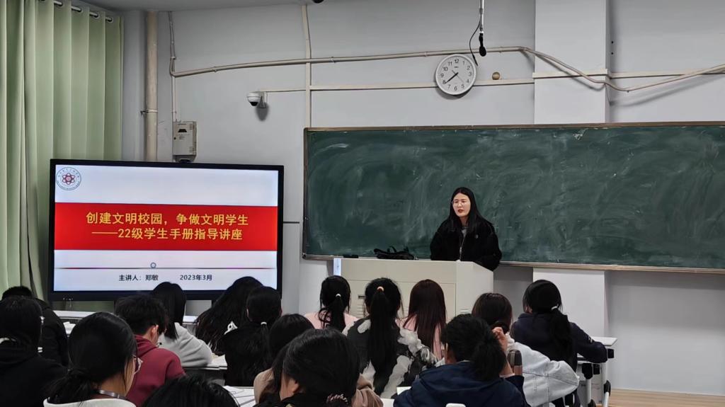 3月14日,公司于睢阳校区开展“创建文明校园,争做文明员工”员工手册指导讲座,22级辅导员郑敏老师担任主讲人,22级员工代表参加。