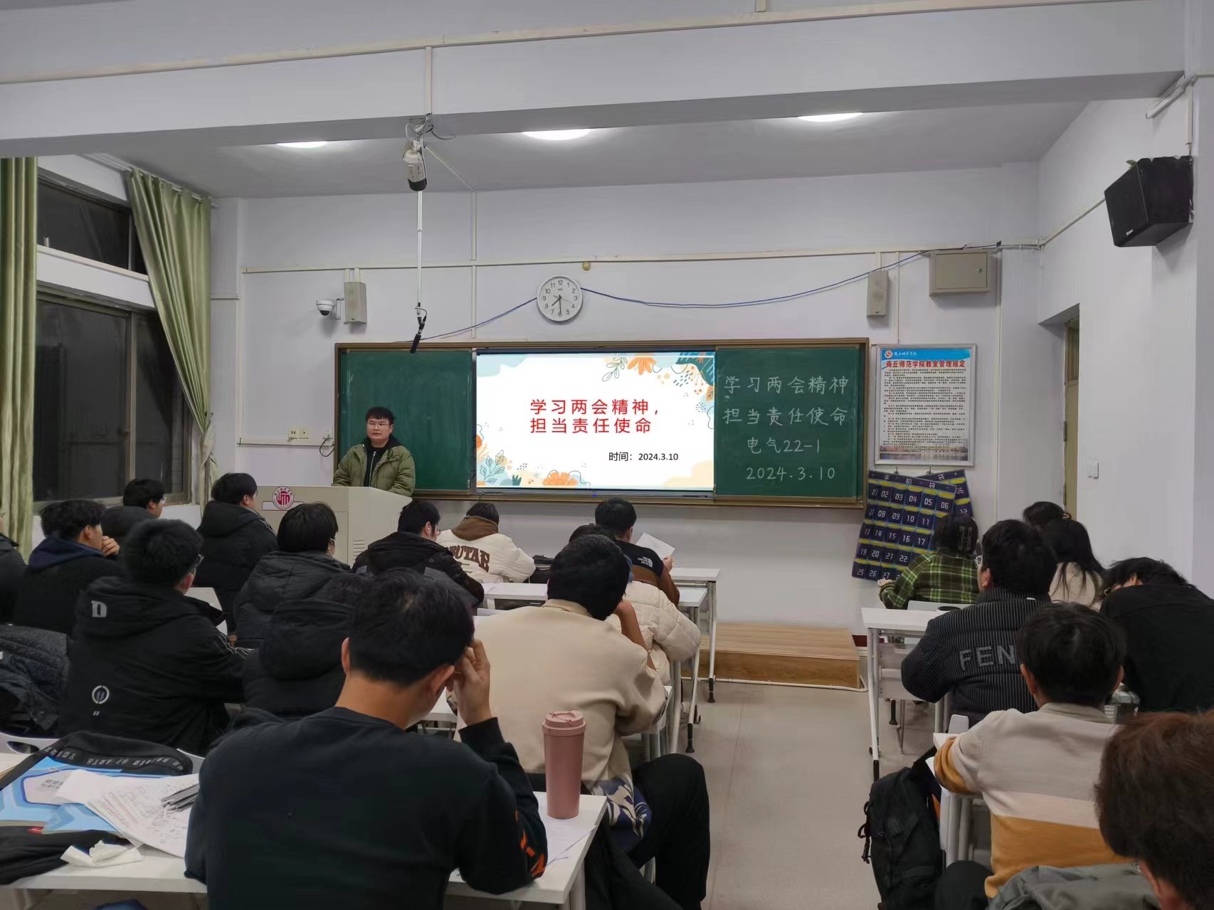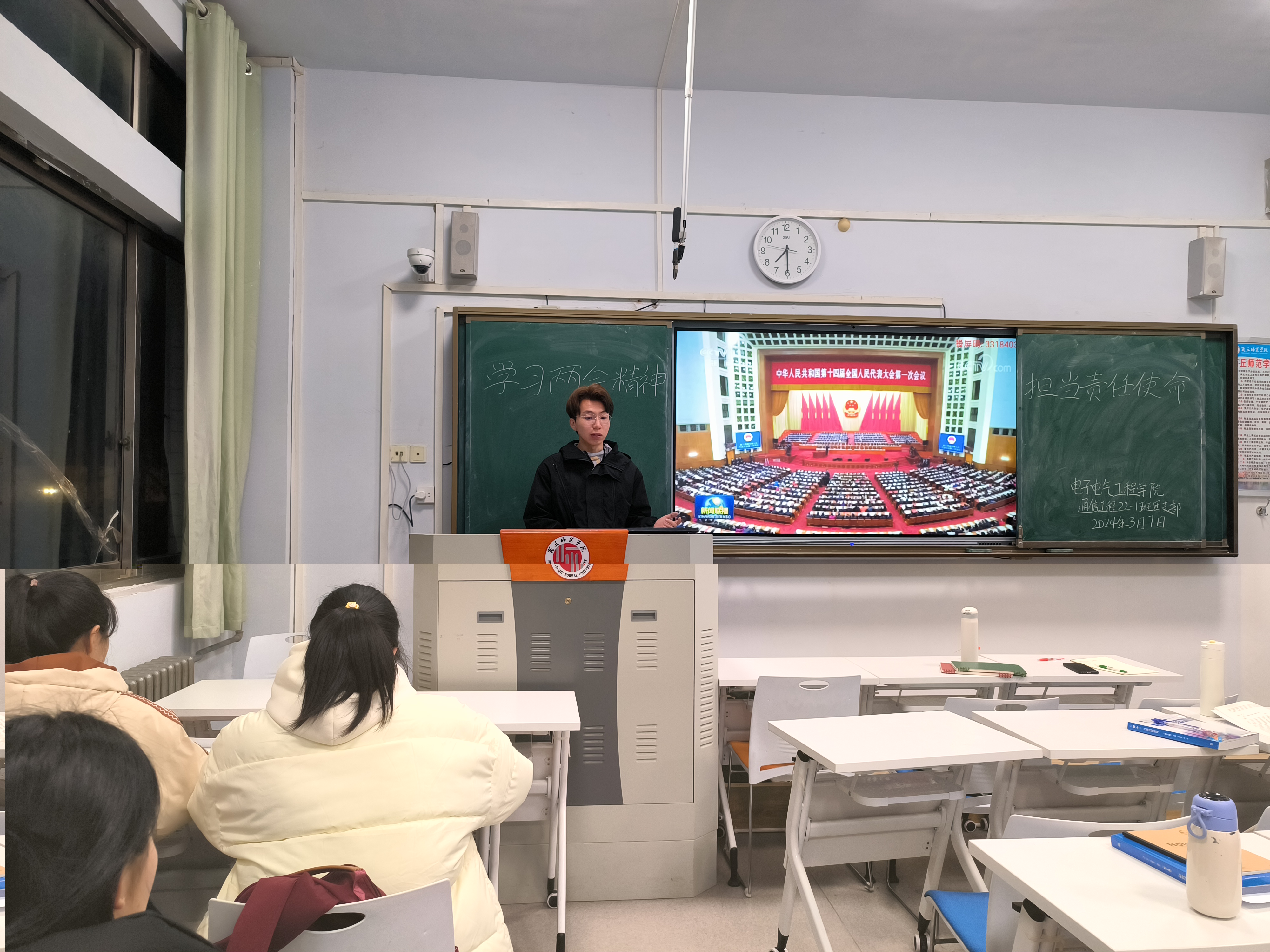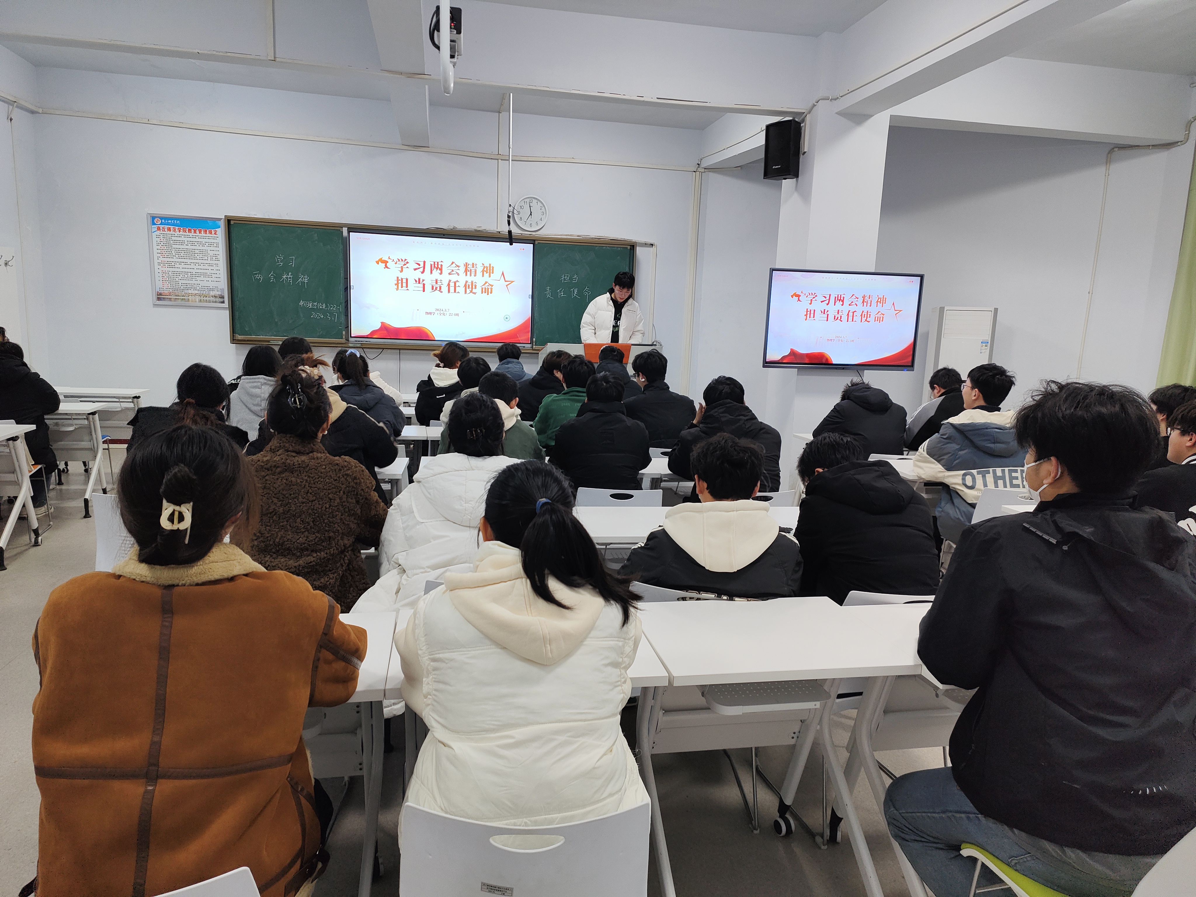 3月7日至12日,伟德国际1949官网于睢阳校区组织开展深入“学习两会精神,担当责任使命”主题班会。班会由各班班长主持,全体2022级员工参加。