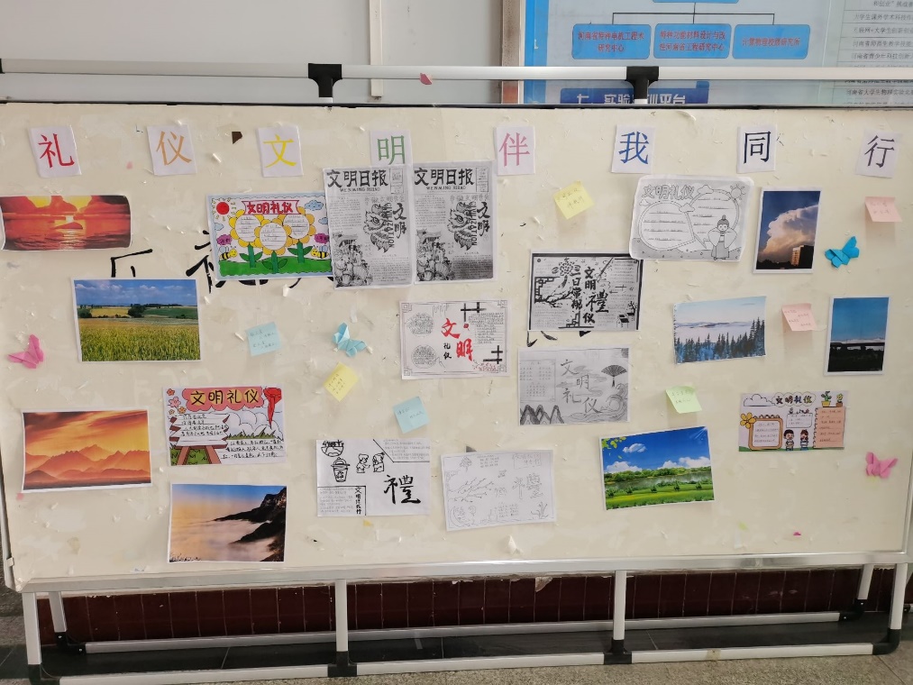 首先,各班通过召开“文明礼仪 伴我同行”主题班会,深入开展行为规范养成教育,引导员工遵守校纪校规,牢固树立健康第一责任人意识,养成科学健康的生活方式,培养良好的社会公共意识。随后,各班同学举行了制作绘画作品、手抄报等活动。