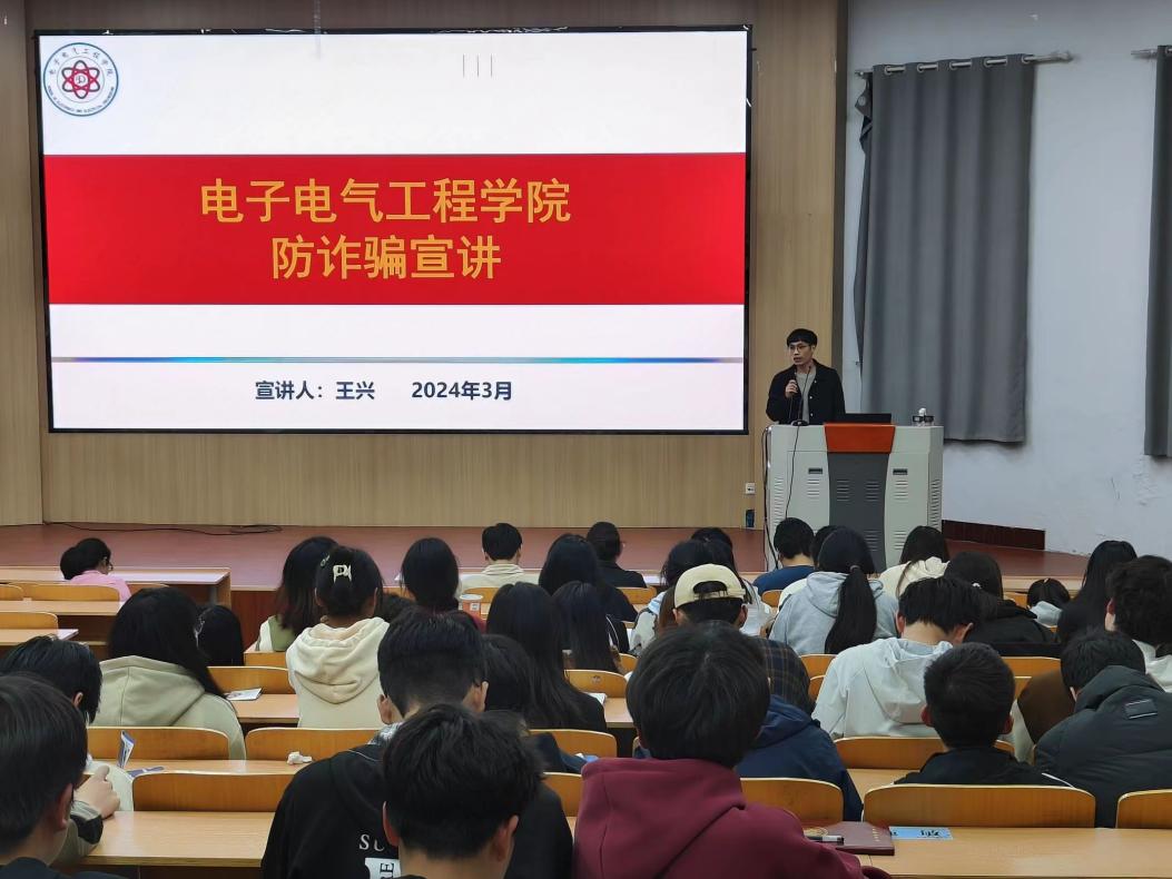 3月22日,公司在物电楼报告厅召开防诈骗宣讲,宣讲会由公司资助专员王兴主讲,2022级、2023级员工代表参会。