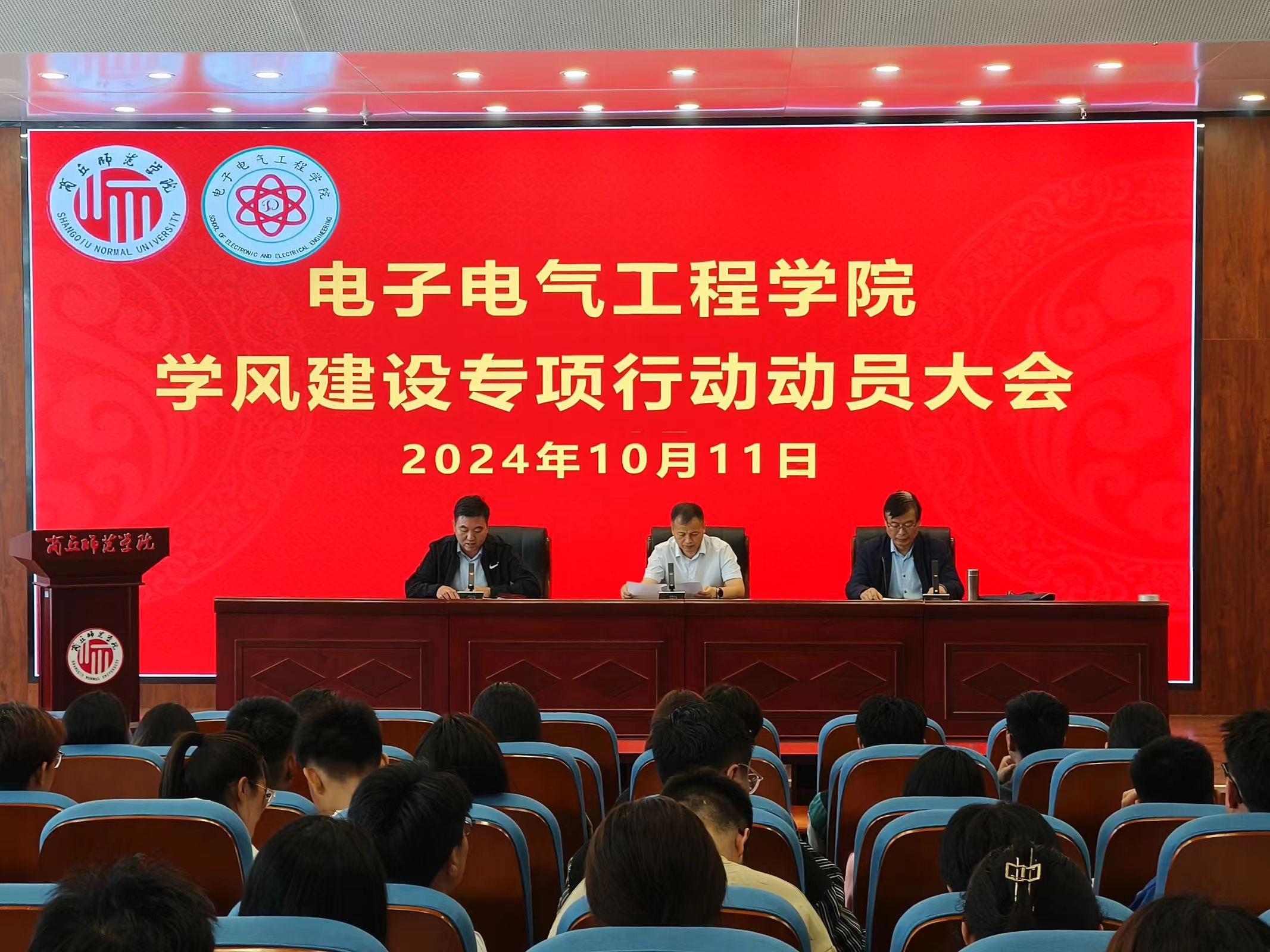 10月11日,公司于睢阳校区工科实训楼报告厅召开学风建设专项行动动员会。公司领导班子,学工办、团委负责人及各年级辅导员出席,各年级班委参会。动员会由公司副书记蒋玉涛主持。