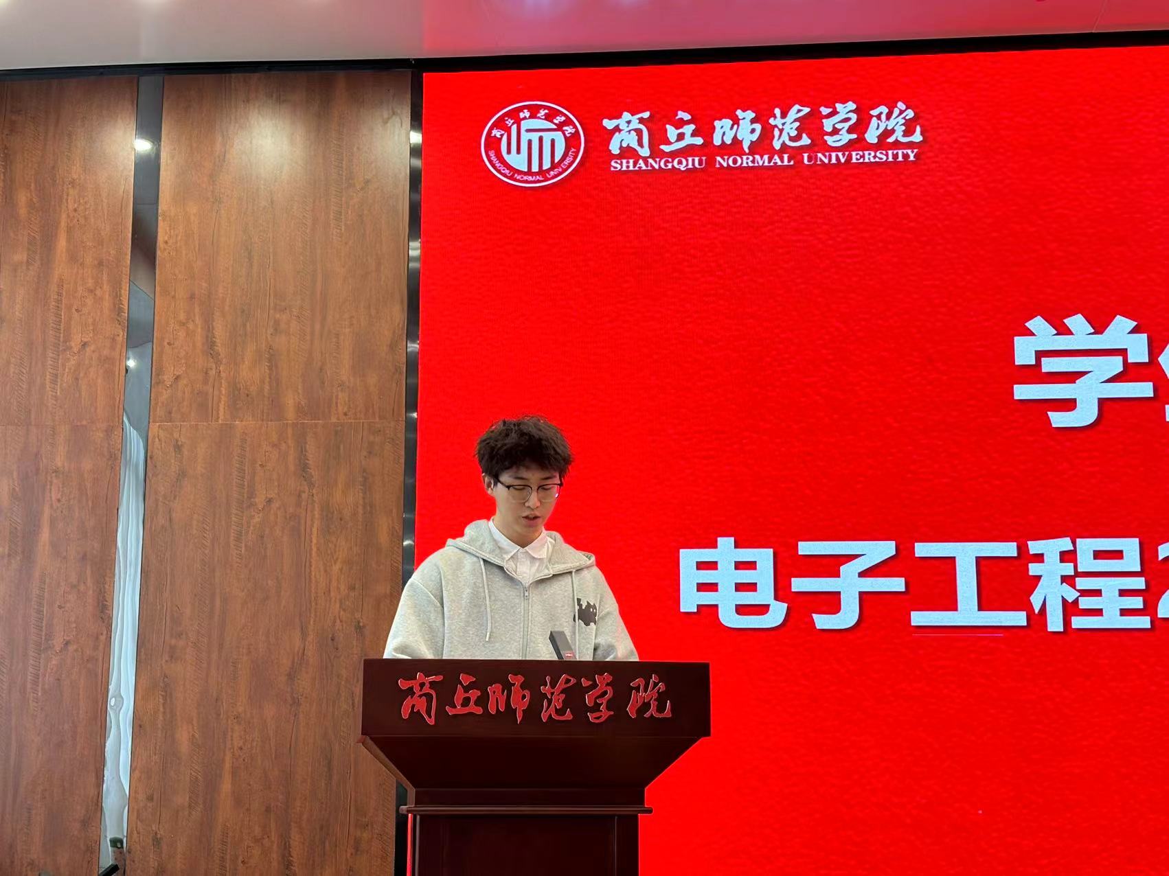电子信息工程22-1班班长梁赛鹏作为“学习模范班级”代表分享了班级学风建设经验;