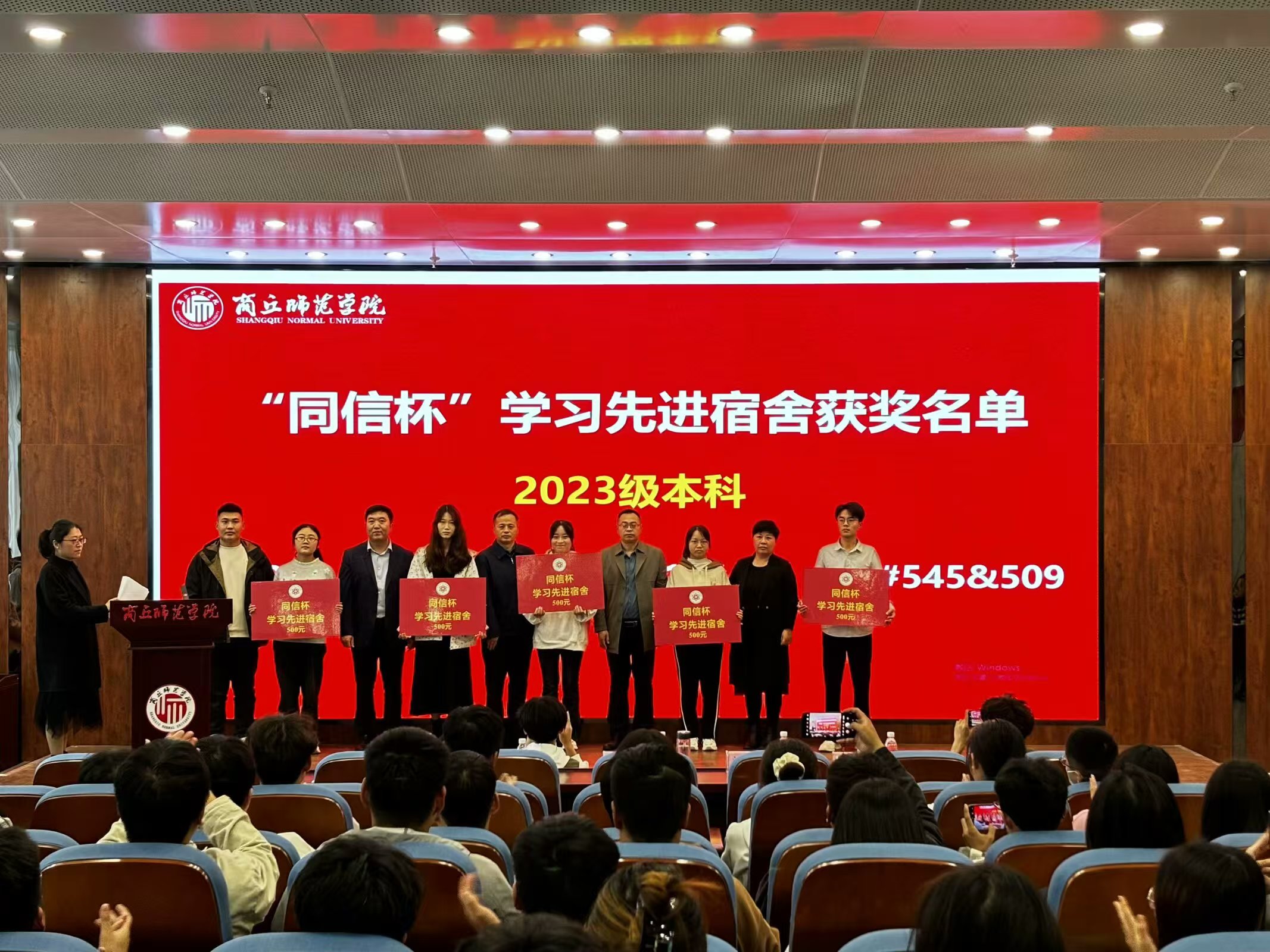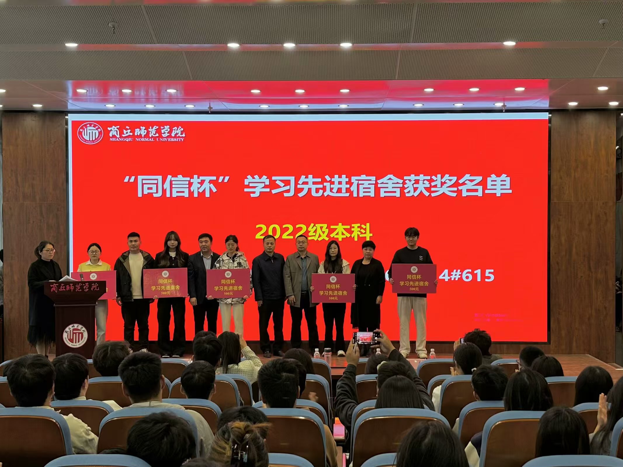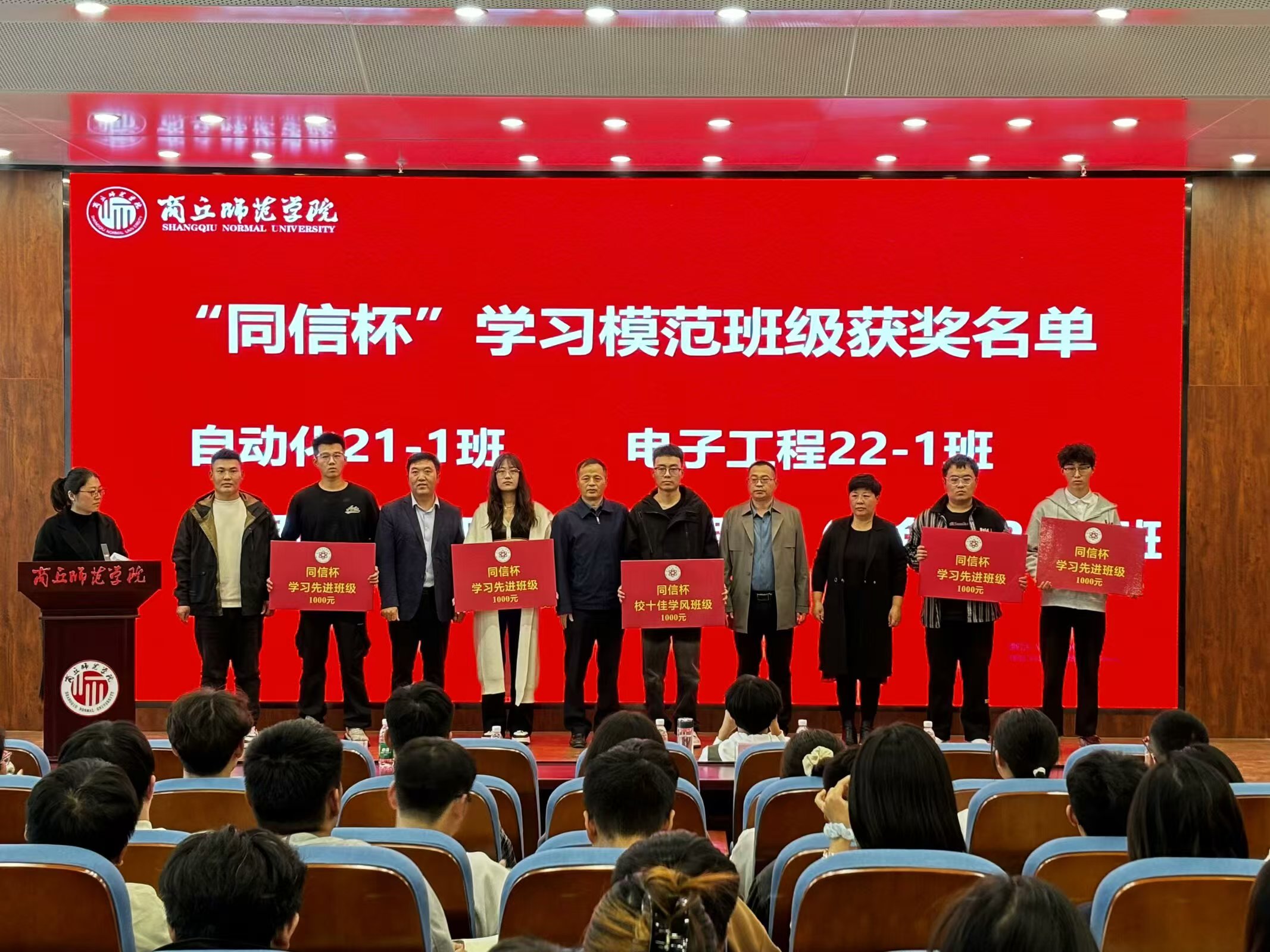 表彰大会在庄严的国歌声中拉开帷幕。蒋玉涛宣读《伟德国际1949官网关于表彰校级“十佳学风班级”的决定》和《伟德国际1949官网关于表彰第六届“同信杯”学风建设先进集体及个人的决定》。随后,颁奖嘉宾依次为获奖集体和个人颁奖。