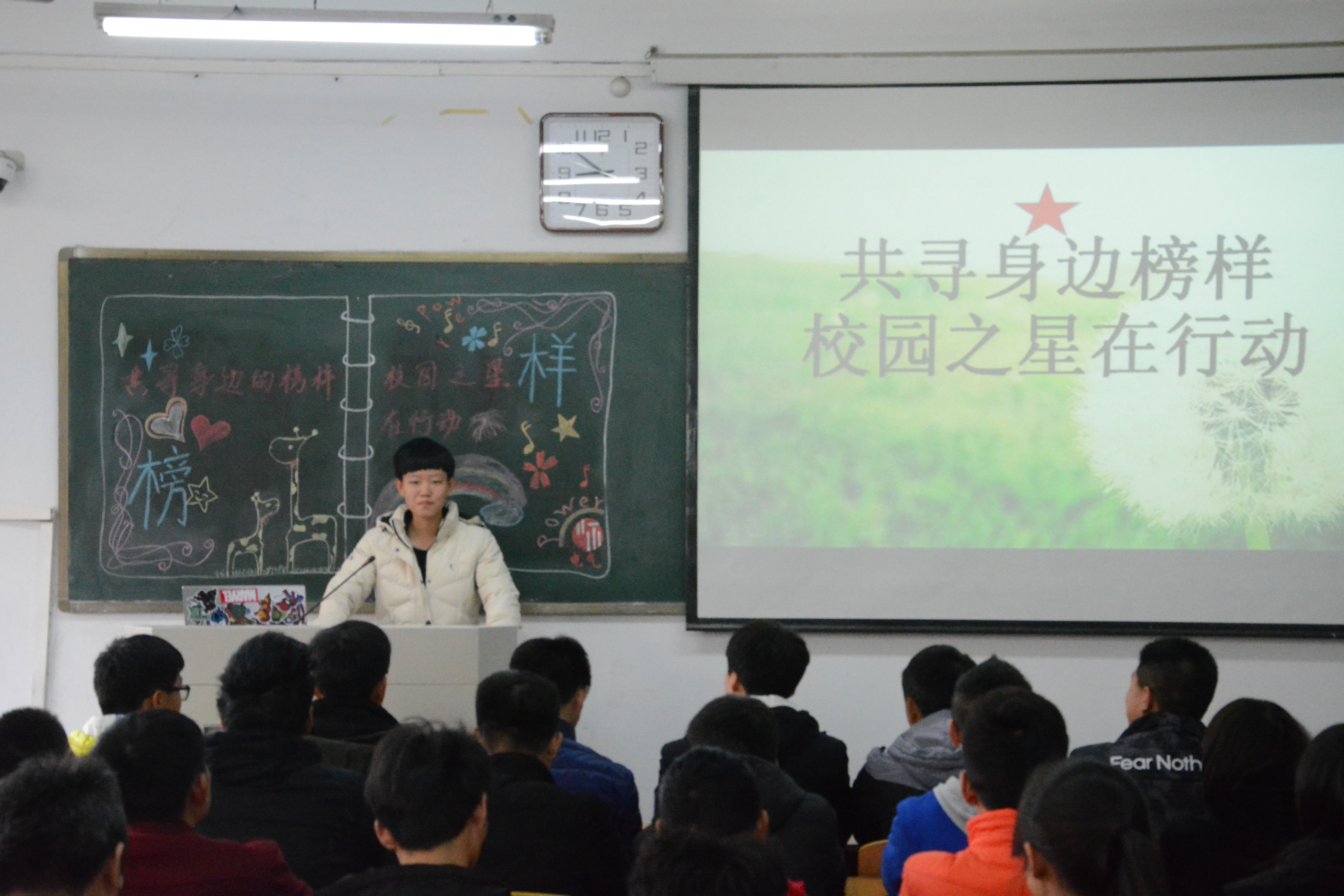 2017年11月24日,伟德国际1949官网17级员工在各班自习室举办以“共寻身边榜样.校园之星在行动”为主题的活动。