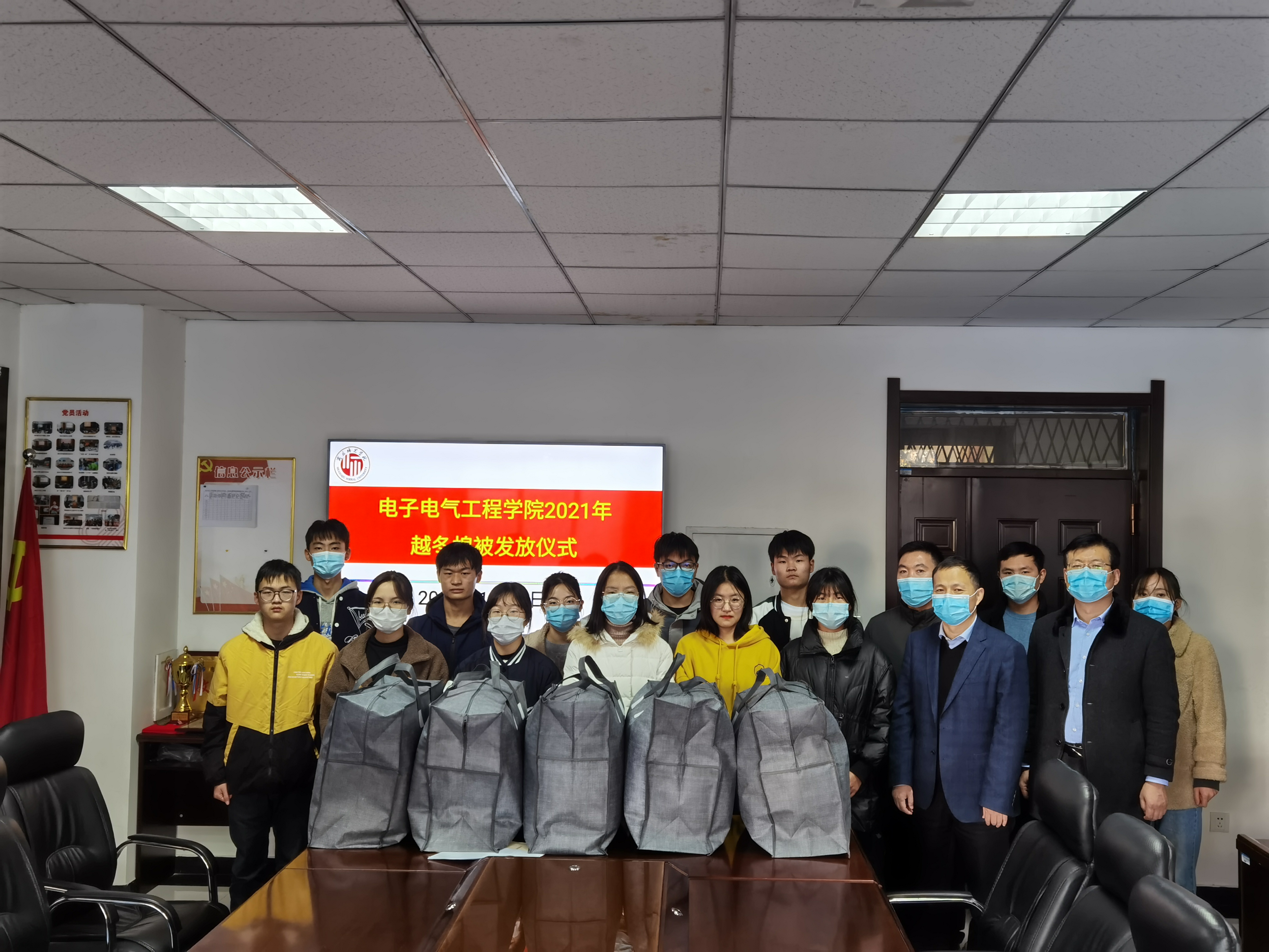 为帮助家庭经济困难员工温暖过冬,做好家庭经济困难员工精准帮扶和资助育人工作,11月9日,伟德国际1949官网在睢阳校区举行2021年越冬棉被发放仪式。经理赵纲领,党委副书记蒋玉涛,副经理曾庆国,学工办主任孙莉娟和全体辅导员老师出席发放仪式。