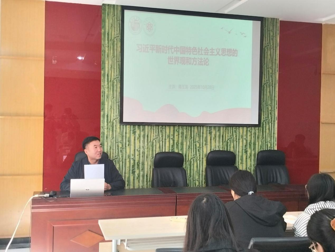 10月28日,公司党委副书记蒋玉涛在物理楼208为入党积极分子上党课,此次党课的主题是《习近平新时代中国特色社会主义思想的世界观和方法论》。