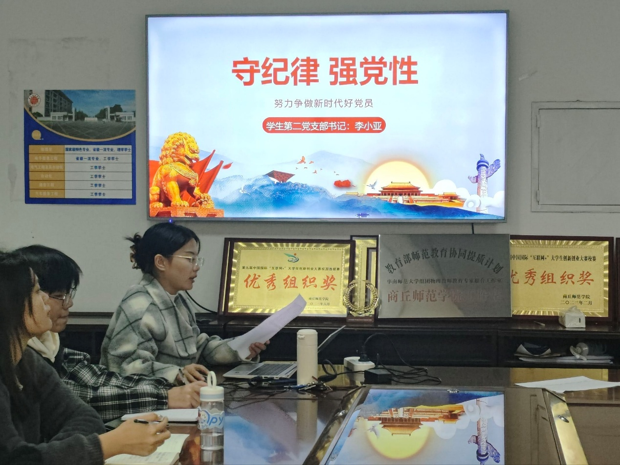 10月30日,公司员工第二党支部书记李小亚为入党积极分子上党课,党课的主题是《守纪律 强党性——努力争做新时代好党员》。