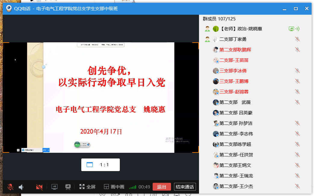 为提高入党积极分子的思想觉悟和理论水平,417日,公司党总支书记姚晓惠于线上讲授以“创先争优,以实际行动争取早日入党”为主题的党课。参加此次会议有公司2020年上半年入党积极分子培训班全体学员。