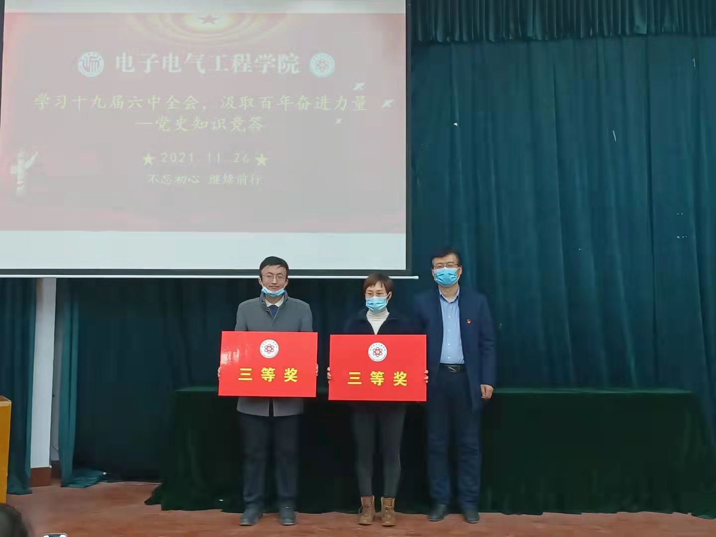 竞赛开始之前,各党支部高度重视,积极组织预选赛,确定了最终参赛选手。本次竞赛以中国共产党发展历程、重要人物、重大历史事件等为主要内容,设置了必答题和抢答题等题型,穿插红歌竞猜、知识抢答等互动环节。赛场上,各支参赛队伍斗志昂扬、精神饱满、沉着应战、积极答题,上演了一场精彩的脑力与知识的较量,展现了深厚的理论知识功底和默契的团队协作精神,以丰富的党史知识储备和精彩的临场发挥,赢得了现场观众的阵阵掌声。经过激烈角逐,最终,教工第三党支部获得“一等奖”、教工第二党支部获得“二等奖”、教工第一党支部和教工第四党支部获得“三等奖”。 最后,宣读了《中共伟德国际1949官网委员会关于表彰“学习强国”学习积极分子的决定》。