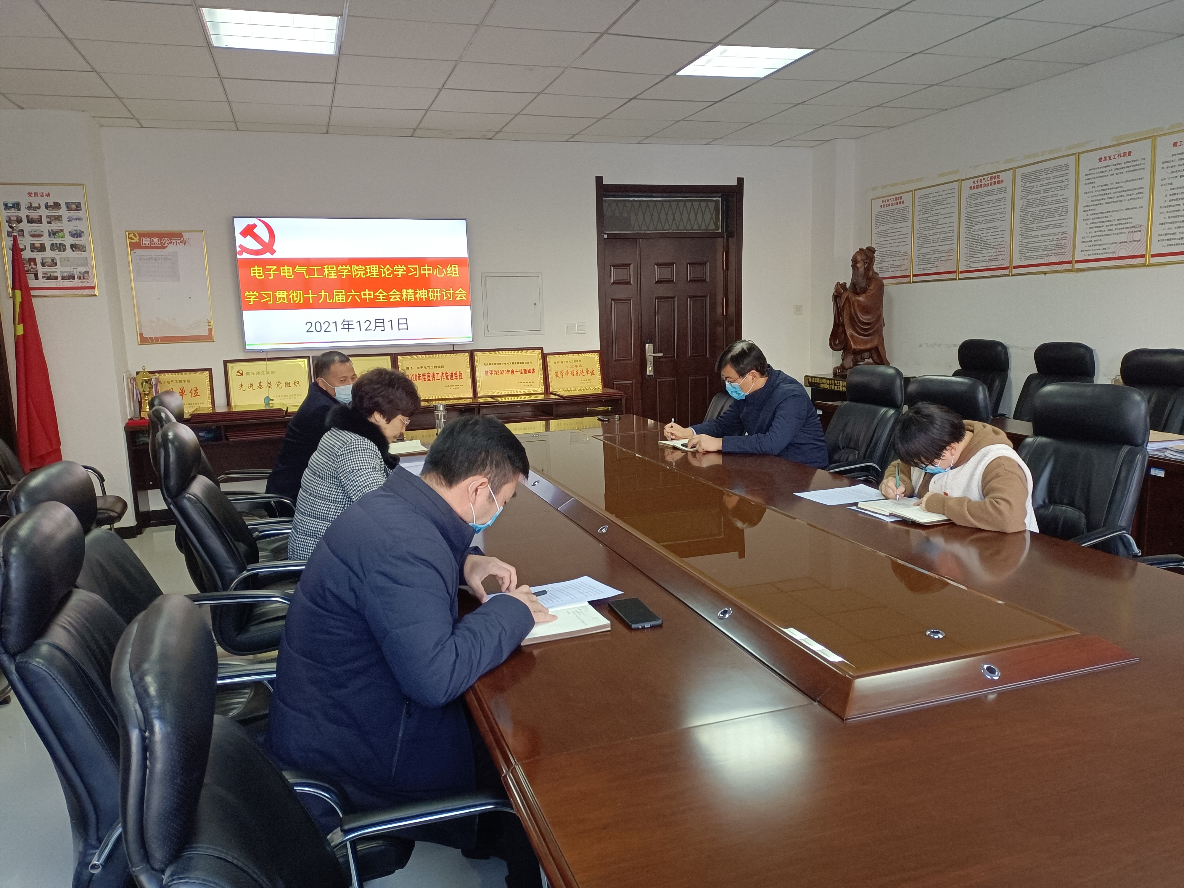 12月1日,伟德国际1949官网理论学习中心组在睢阳校区召开专题研讨会,深入领会学习党的十九届六中全会精神。