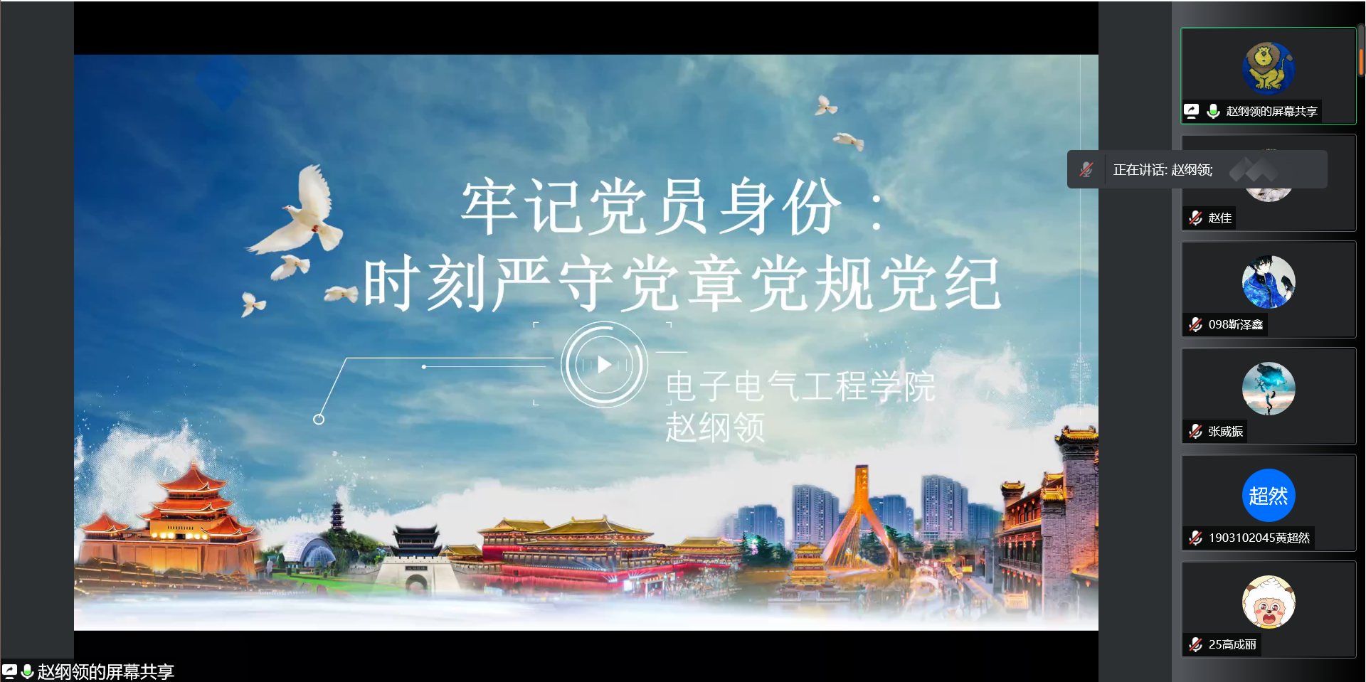 本次党课的主题是“牢记党员身份:时刻严守党章党规党纪”。课上,赵纲领通过列举老一辈奋斗者以及为防疫工作做出突出贡献的无私奉献者,强调了作为一名中国共产党员要做到忠于组织、与党同心同德。接着,他要求要深入学习党章党规党纪,并号召入党积极分子深刻体会到了遵纪守法。最后,他指出入党积极分子要做到党员标准,讲政治、有信念、讲规矩、有纪律、讲道德、有品行、讲奉献、有做为。