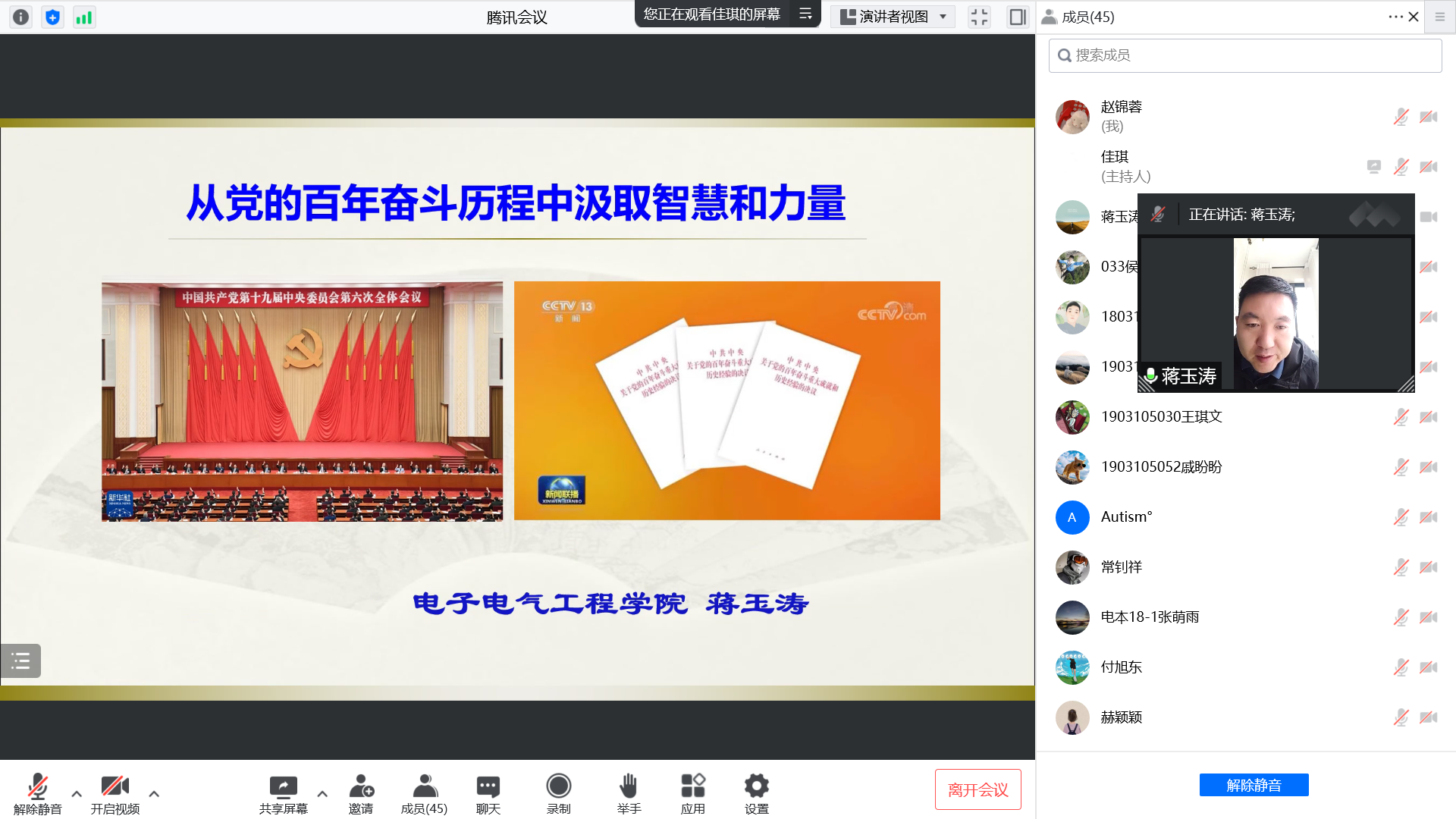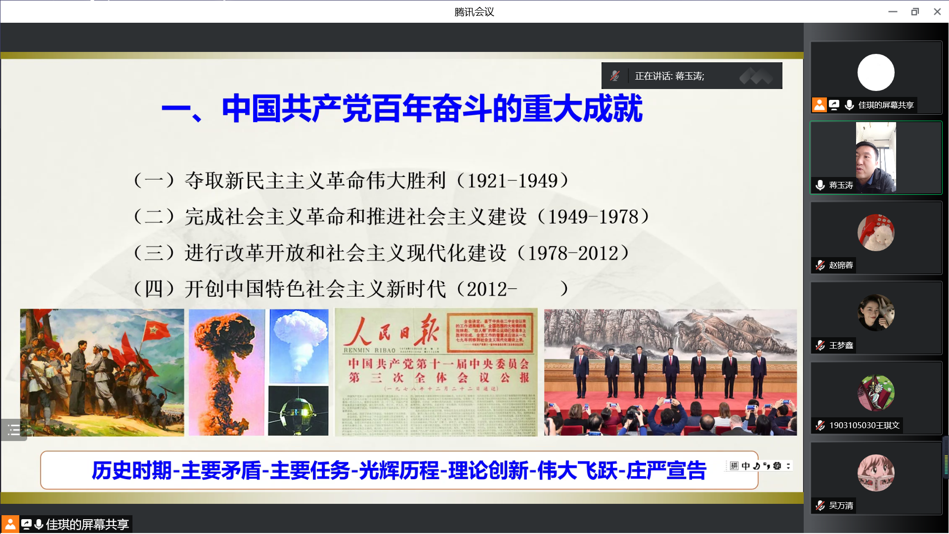 5月15日,伟德国际1949官网通过腾讯会议方式开展《从党的百年奋斗历程中汲取智慧和力量》党课学习活动。本次党课由公司党委副书记蒋玉涛主讲。