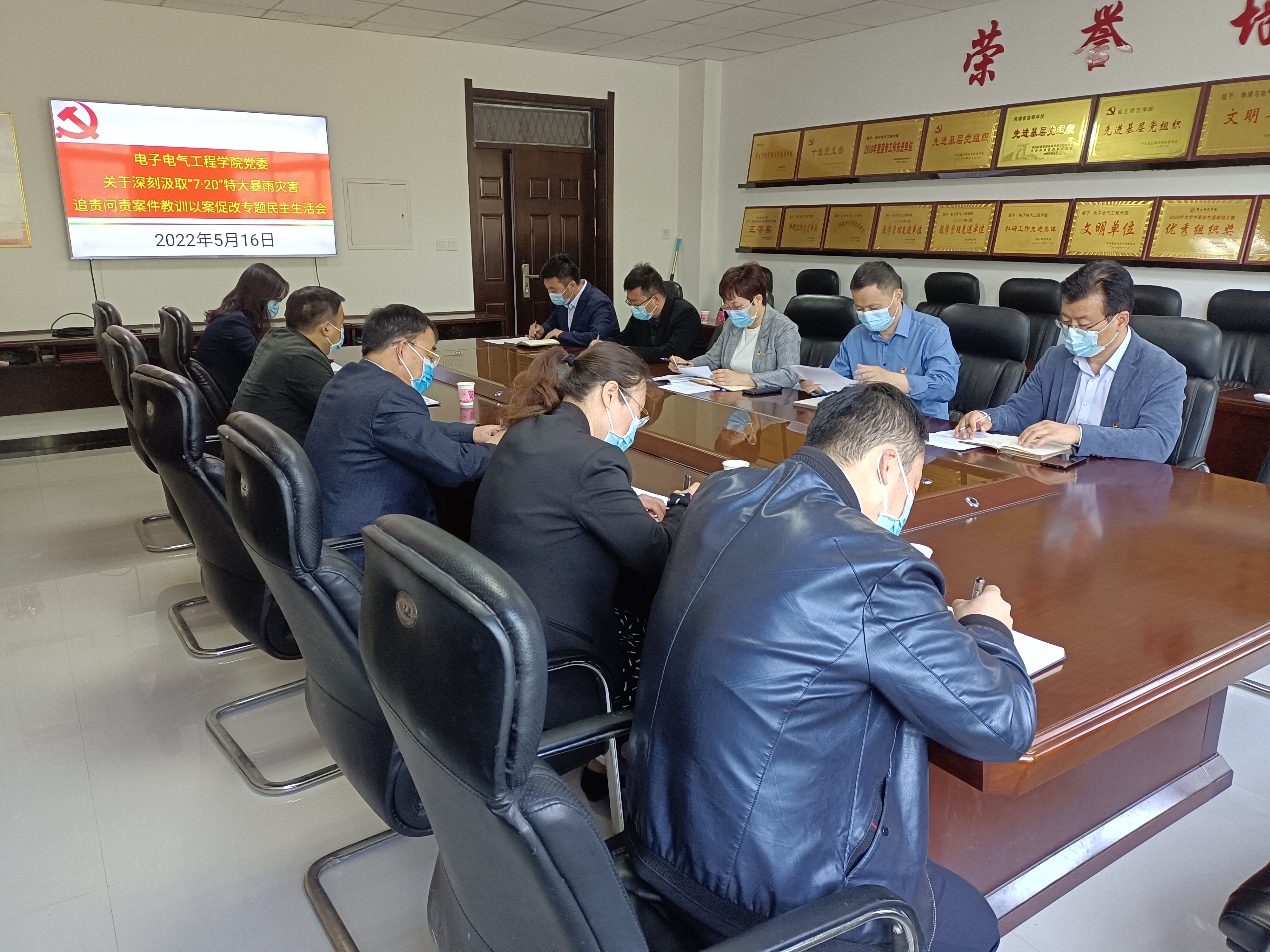 5月16日,公司于睢阳校区召开“7.20”特大暴雨灾害问题追责案件以案促改专题民主生活会。民主生活会督导组第五组组长副董事长徐茂田,组员纪委副书记路利,督查督办科副科长吴海峰和校纪委委员、纪检监察员第八监督指导组纪委副书记陈东、网络思政中心主任、组织部副部长郭宁莅临指导。公司党政领导班子成员参会,特种功能材料设计与改性河南省工程研究中心主任李朋列席会议。