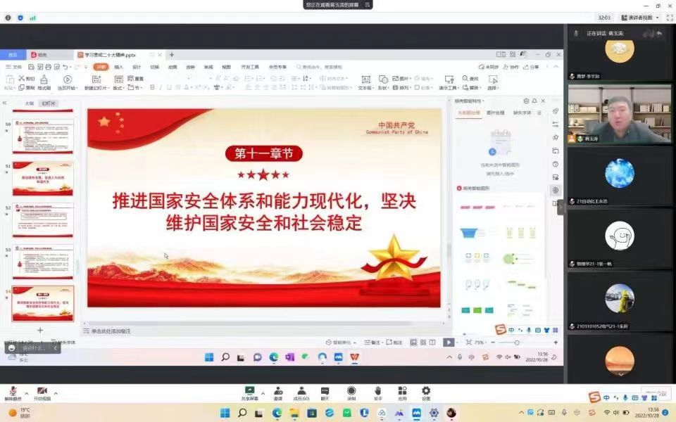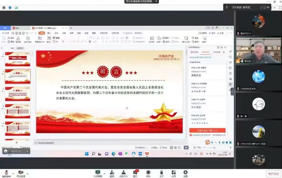10月28日,伟德国际1949官网于腾讯会议开展《学习贯彻党的二十大精神做好新时代老员工思想政治工作》党课学习活动。本次党课由公司党委副书记蒋玉涛主讲。