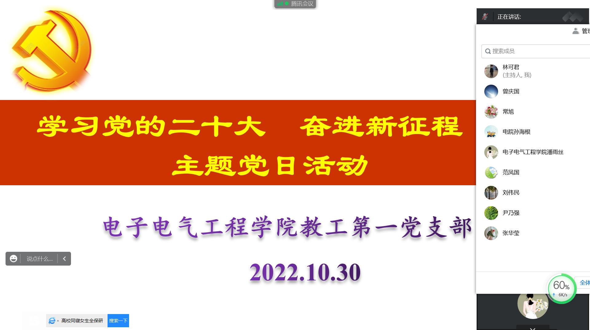 10月25日至10月31日,公司各党支部于线上相继开展“学习党的二十大,奋进新征程”主题党日活动,全体师生党员参加。