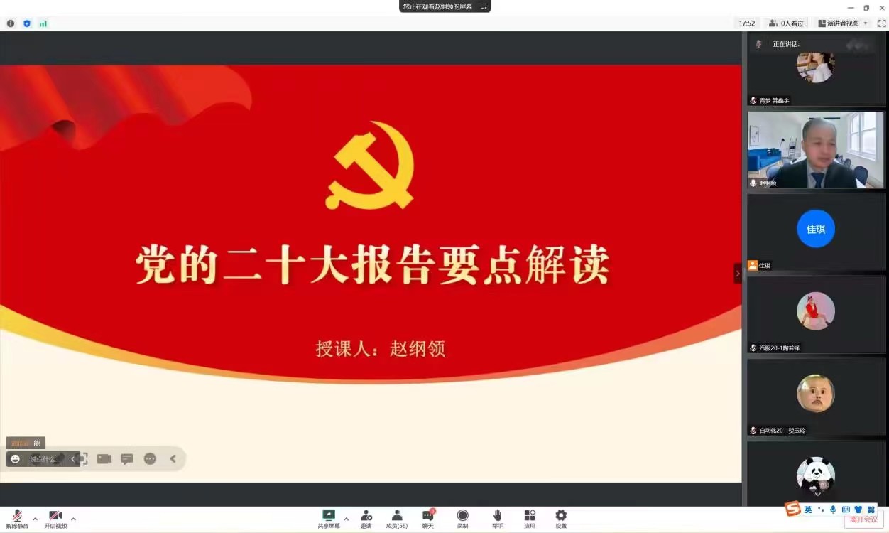 10月31日,伟德国际1949官网经理赵纲领通过腾讯会议开展《学习二十大 奋进新征程——党的二十大报告要点解读》专题党课,公司第51期全体入党积极分子参加。