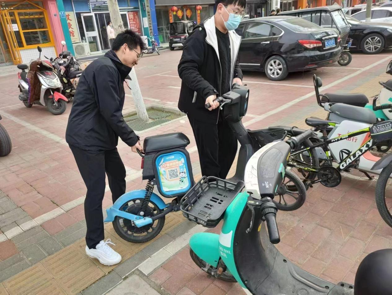 活动开始前,员工第四党支部书记、学工办主任孙莉娟布置安排此项工作。之后在各员工支部书记的带领下,员工党员们来到活动地点,根据各自分工把校外乱停乱放的共享单车整齐地摆放到停车区,并对随意停放共享单车的市民进行劝导,引导大家规范停车。经过大家的一番辛勤劳动,让城市环境更加整洁,呈现出靓丽优美、安全文明的新风貌。