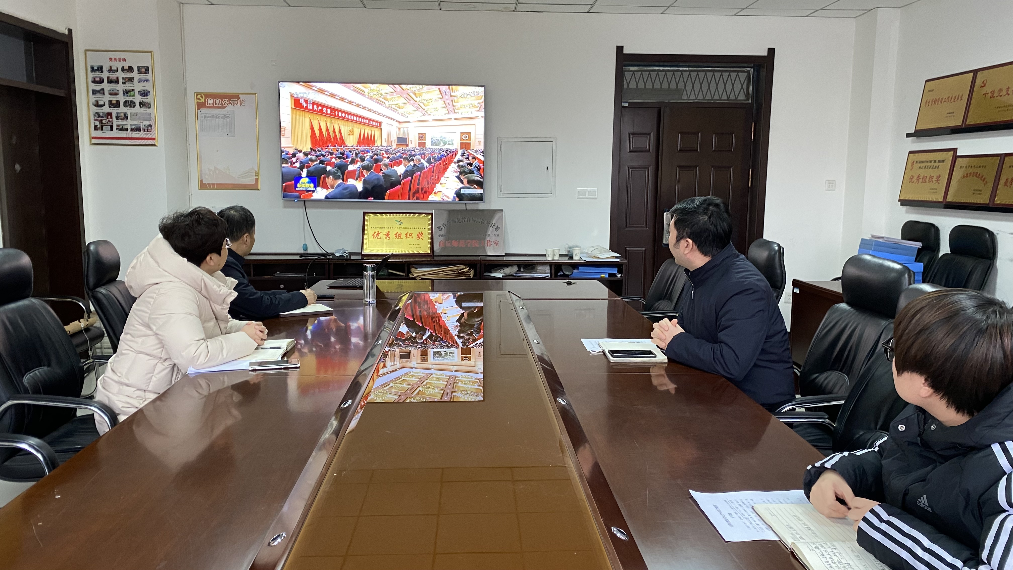 与会成员共同收看了央视《新闻联播》相关报道视频,进行深入学习,结合工作实际,作研讨交流。