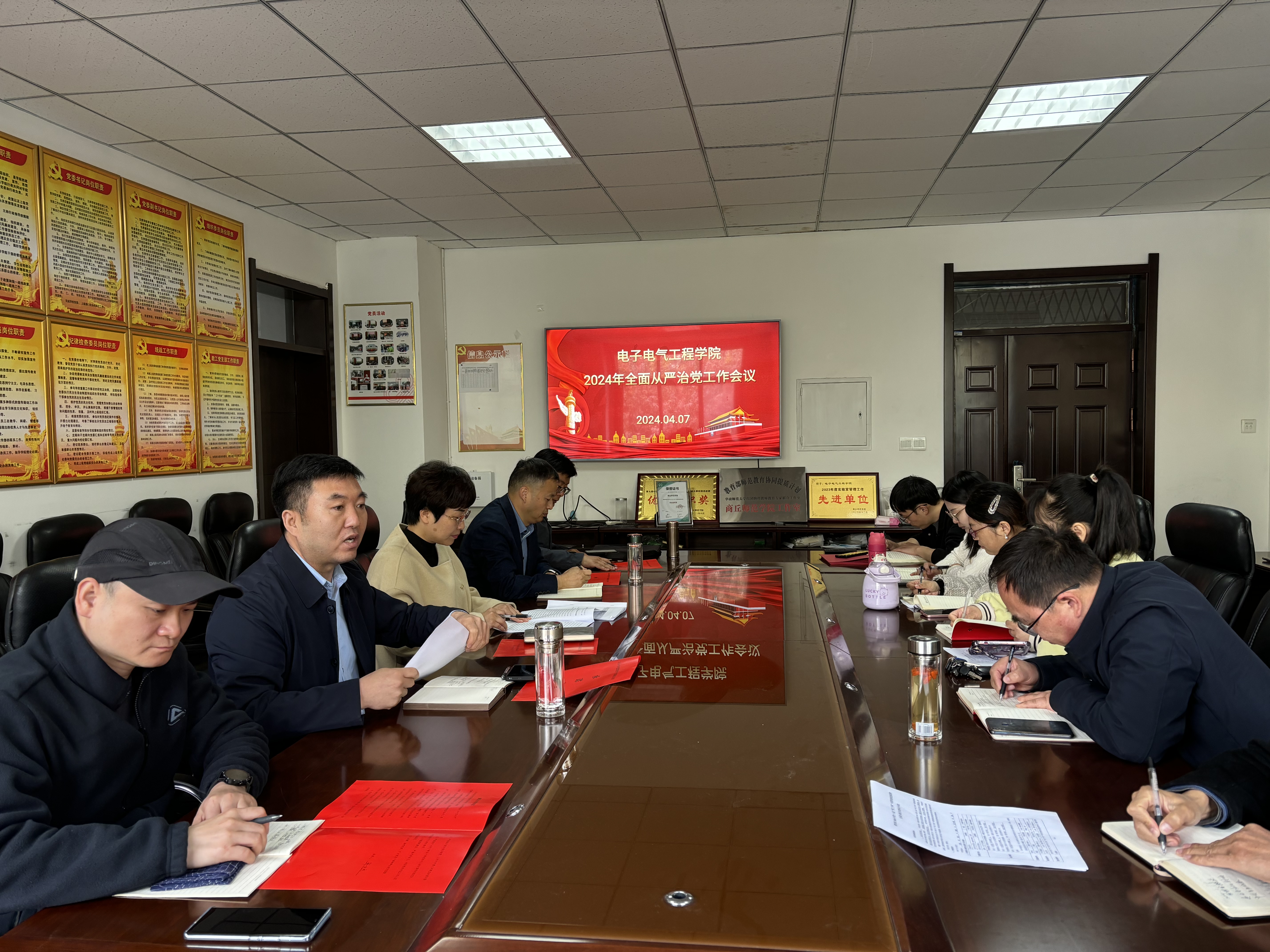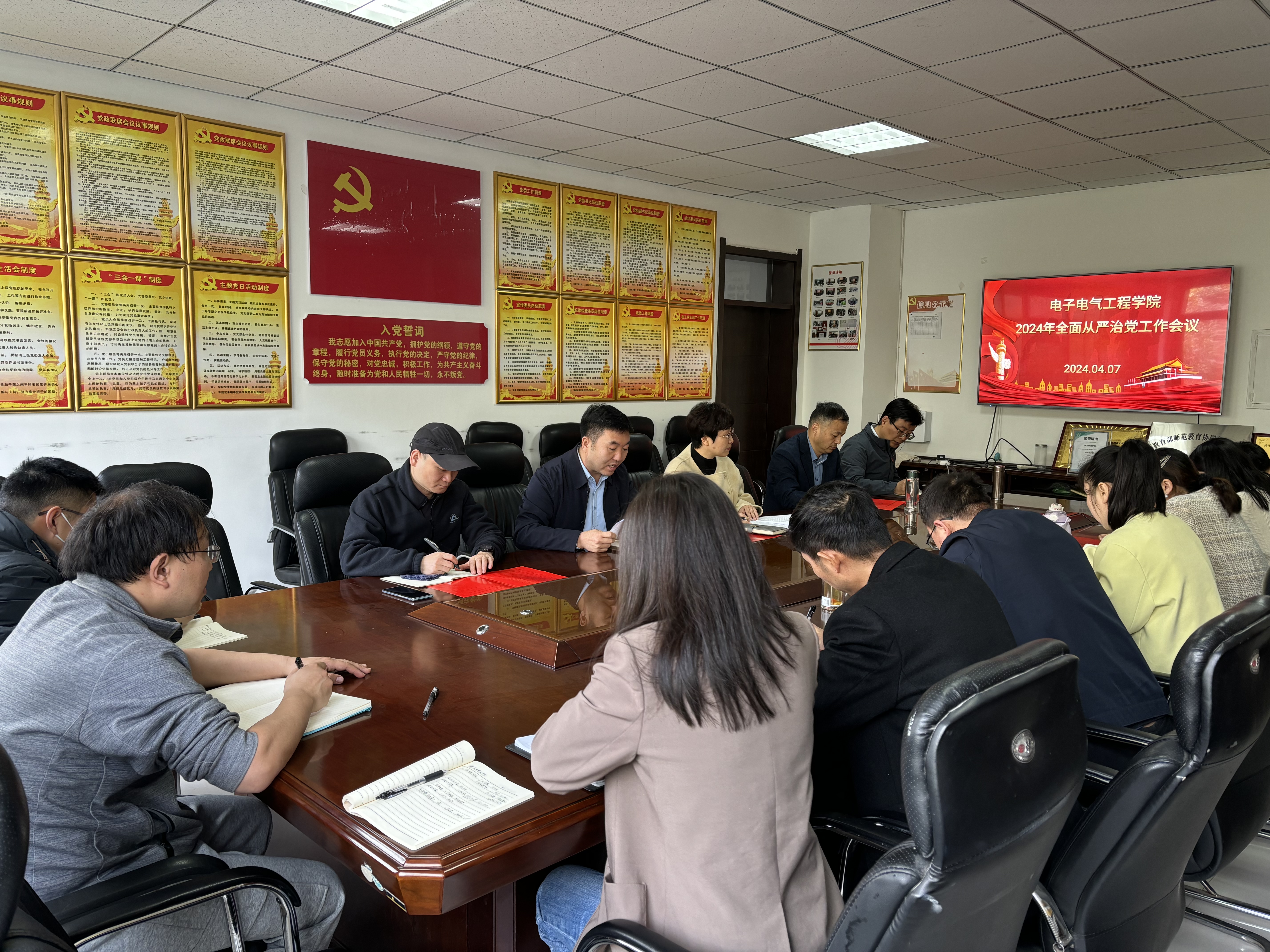 4月7日,公司在睢阳校区物电楼206召开2024年全面从严治党工作会议。公司科级及以上干部、系主任、全体辅导员参加会议。公司党委副书记、纪检委员蒋玉涛主持会议。