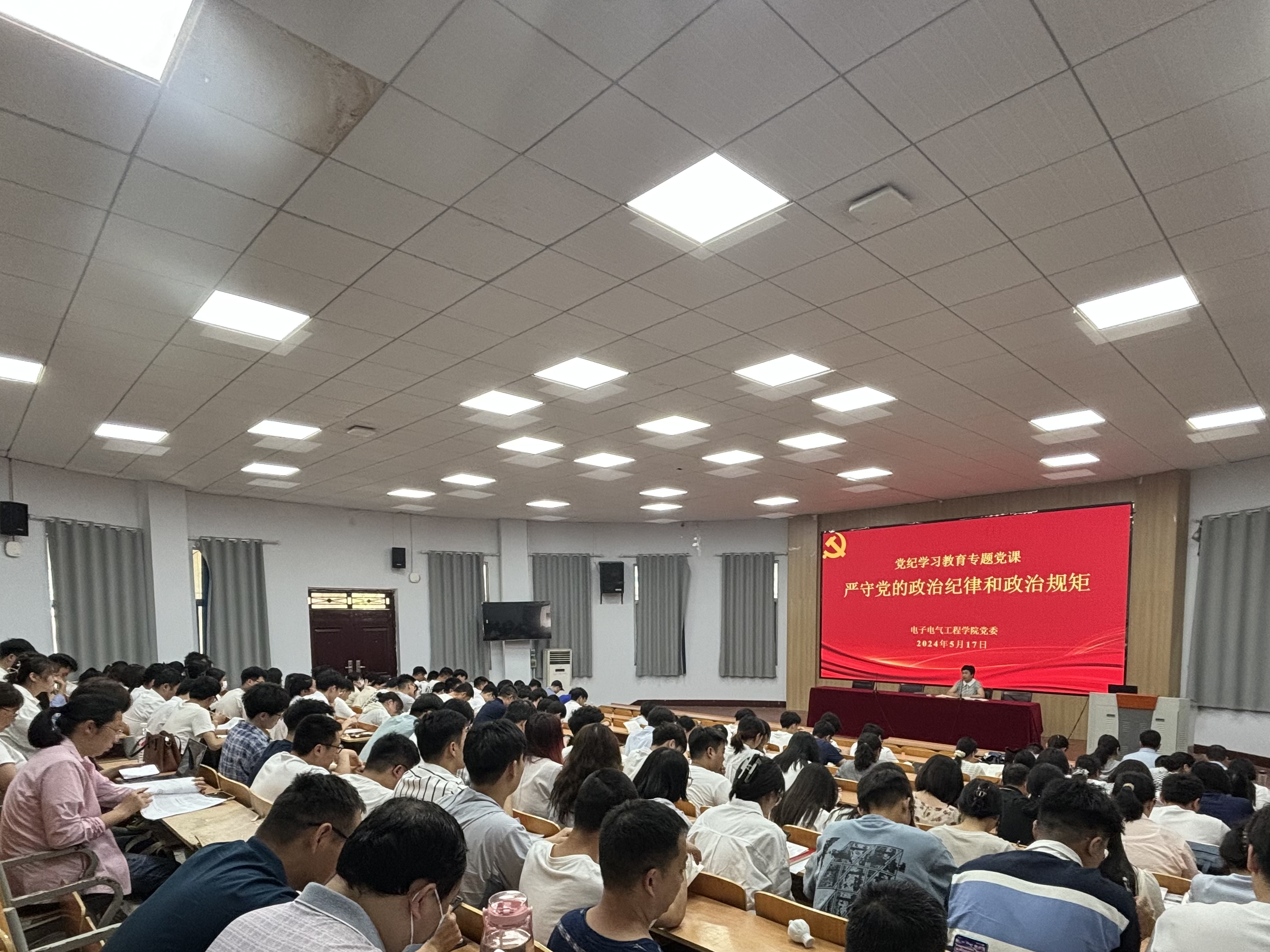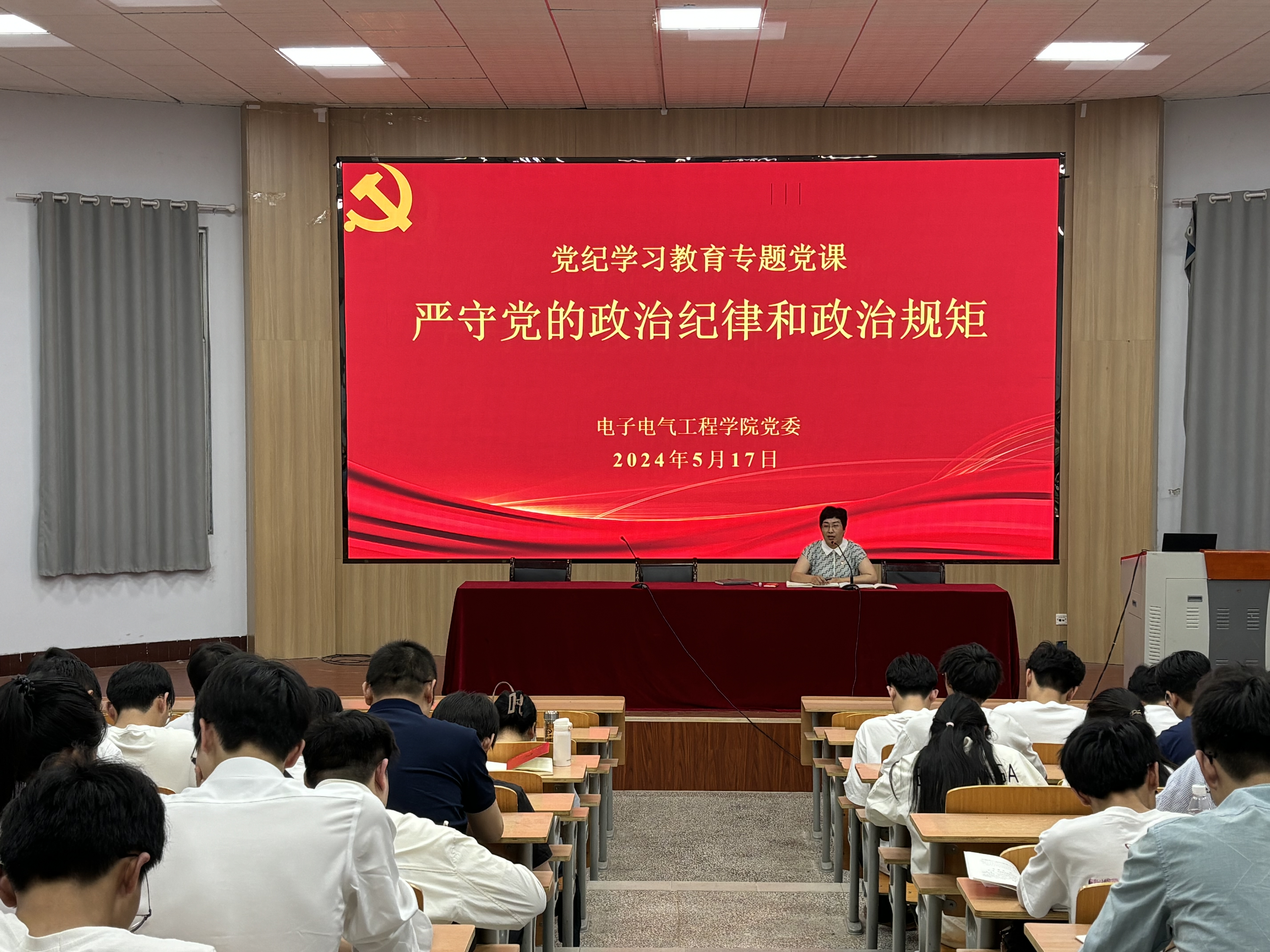 5月17日,公司党委书记李琳为公司师生上《中国共产党纪律处分条例》专题党课,全体党员教师、员工第三党支部党员、(第19期)员工预备党员参加。