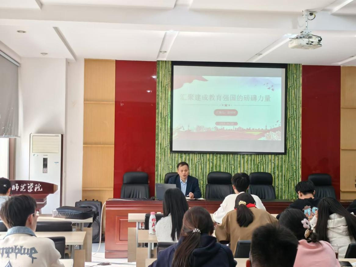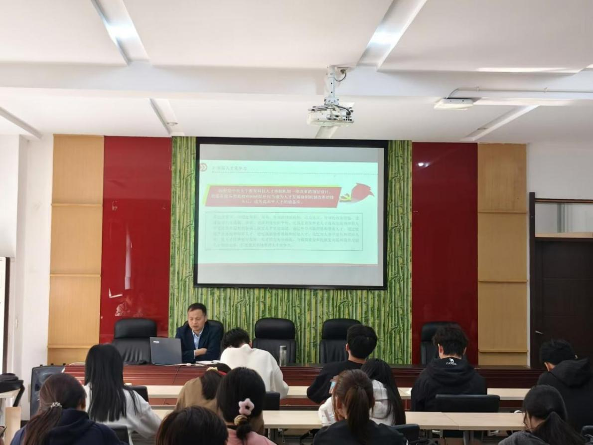 课上,赵纲领从六个方面对党的教育强国理念进行讲解,一是熔铸思政领导力;二是夯实人才竞争力;三是增强科技支撑力;四是强化民生保障力;五是提升社会协同力;六是扩大国际影响力。