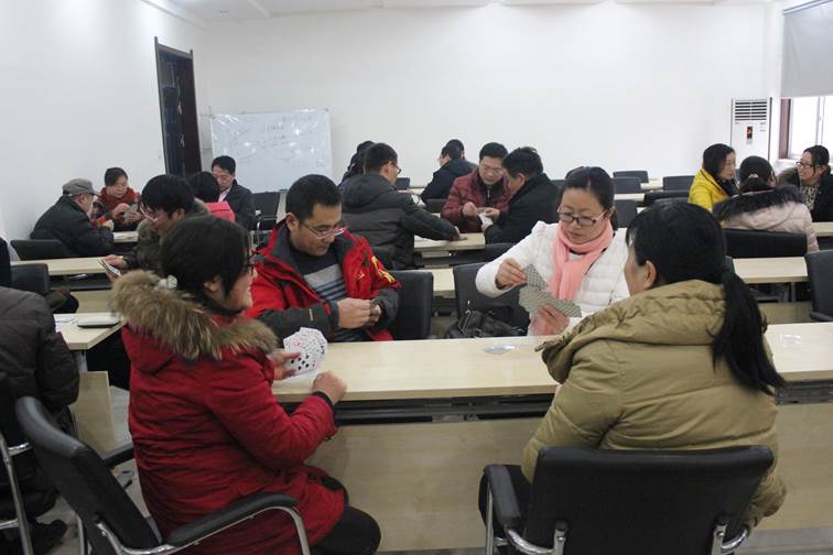 为庆祝“元旦”、 “春节”的到来,1月8日下午,物理与电气信息公司在文化路校区物理实验楼二楼报告厅组织了一场别开生面的双升和掼蛋趣味比赛活动,物理与电气信息公司全体教职工参加了趣味活动。比赛时,教职工们热情很高,踊跃地参与比赛,各参赛队员认真比赛,比赛中选手们全神贯注、齐心协力、团结一致,气氛热烈,笑声不断。比赛中各路好手使出浑身解数,赢得了阵阵掌声。此次活动丰富了公司教职工的业余生活,让教职工们度过了一个愉快的周末。(物理与电气信息公司)
