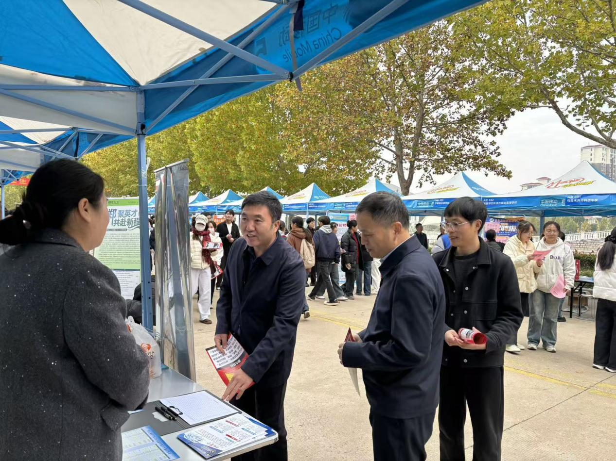 10月24日上午,经理赵纲领、党委副书记蒋玉涛,22级辅导员郑敏、王兴来到公司秋季大型双选会现场,实地指导公司毕业生就业工作。
