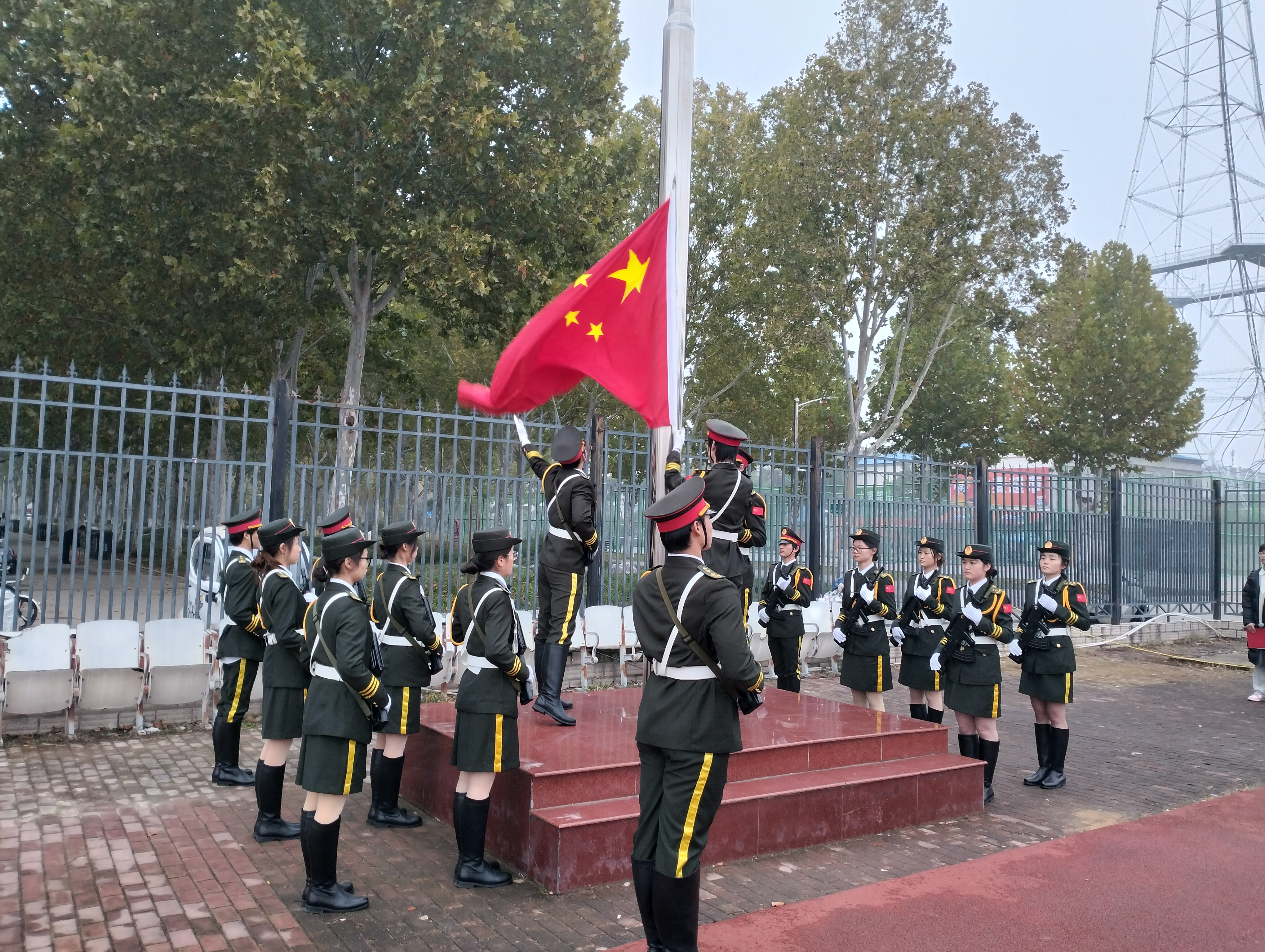 早晨6时50分,升旗仪式正式开始。英姿飒爽的国旗护卫队迈着铿锵有力的步伐,护卫着五星红旗走向升旗台。在庄严的国歌声中,鲜艳的五星红旗冉冉升起,全体师生行注目礼,现场气氛肃穆而热烈。