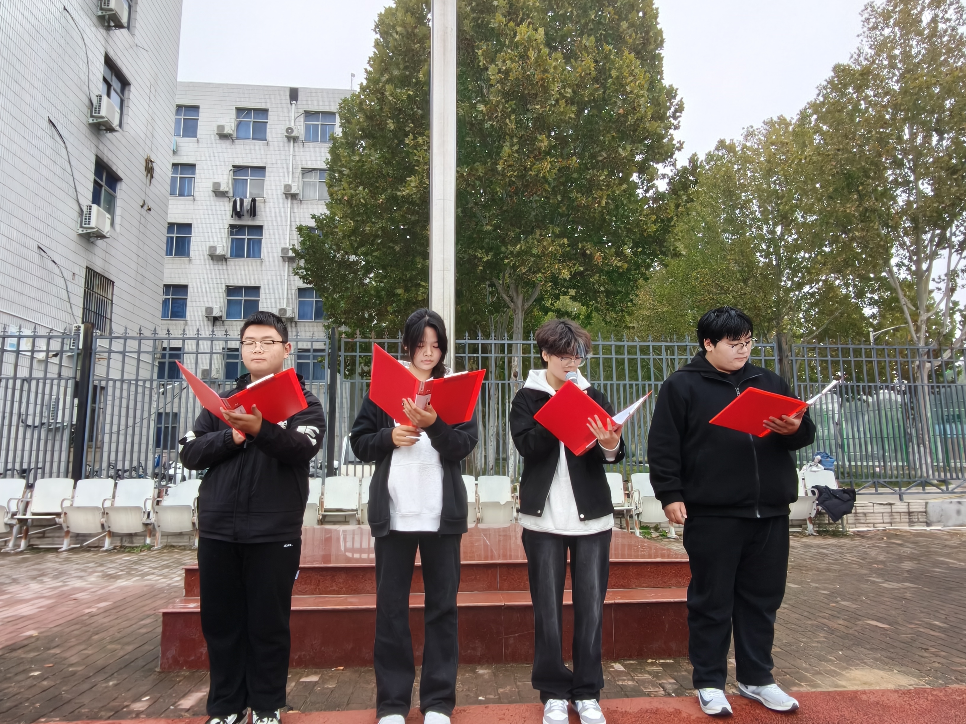 礼毕后,员工代表邱浩然、张家盛、李镕芯、张艺涵等四位同学带来了激情澎湃的国旗下朗诵《青春逢盛世,奋斗正当时》。他们的朗诵铿锵有力,表达了新时代青年坚定不移跟党走、奋进新征程的赤子之心,也展现了2025级新同学昂扬向上的精神风貌。